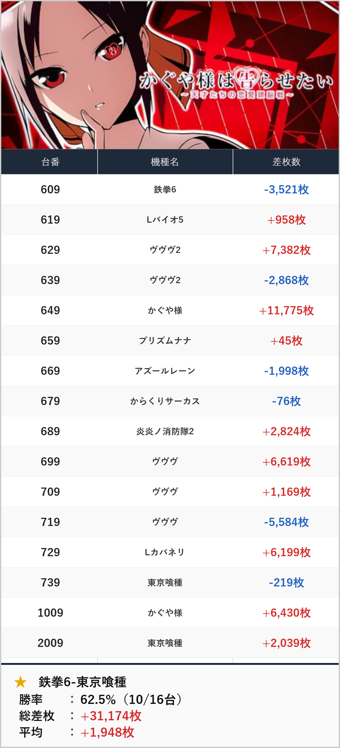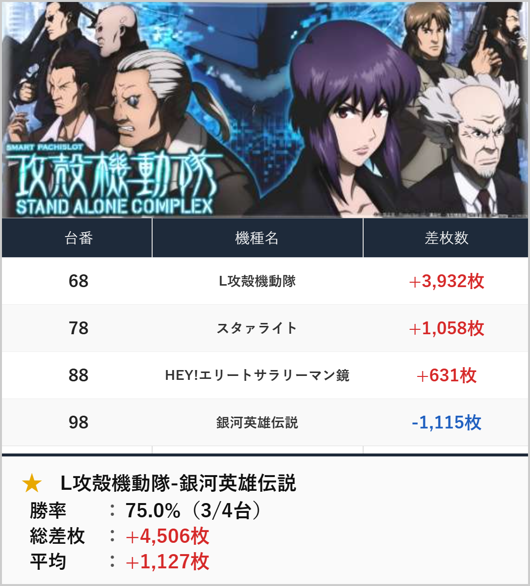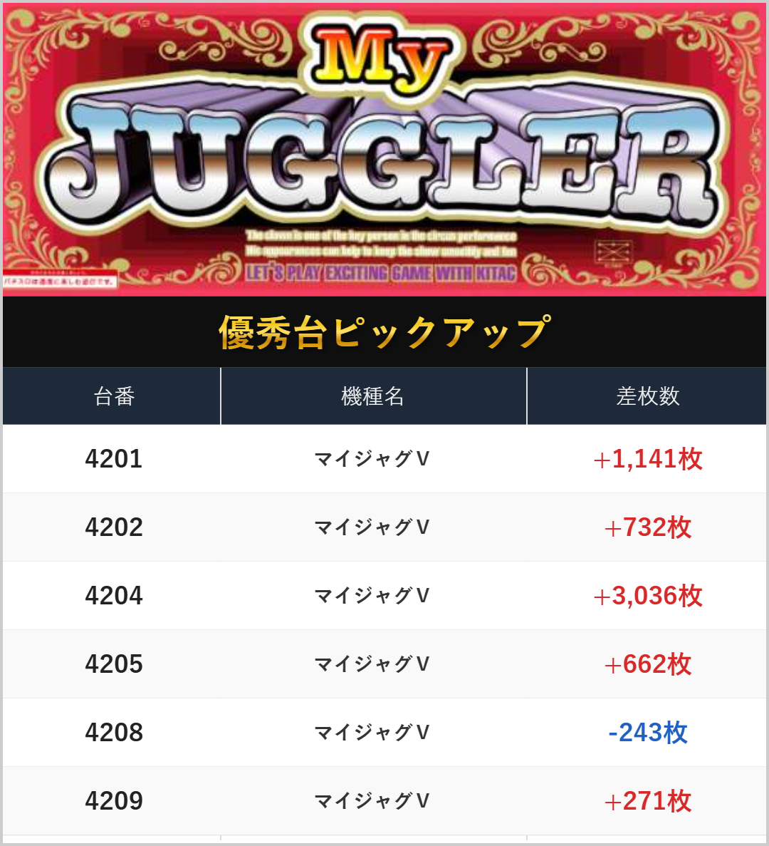 16台中15台プラスと惜しくも1台届かずでしたが、平均+3,892枚と超優秀な結果に!