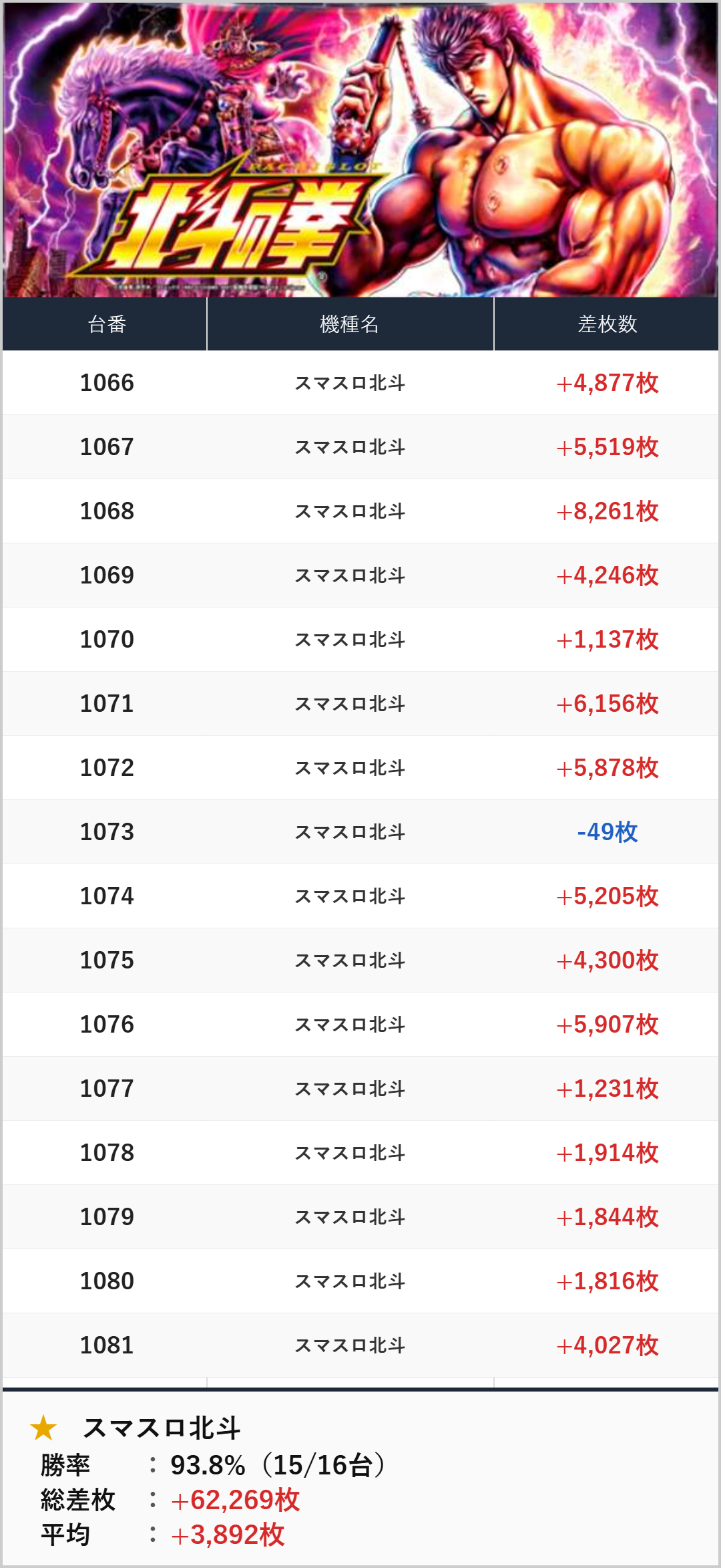 【全台系🌈】:スマスロ北斗(16台)【平均+3,892枚】