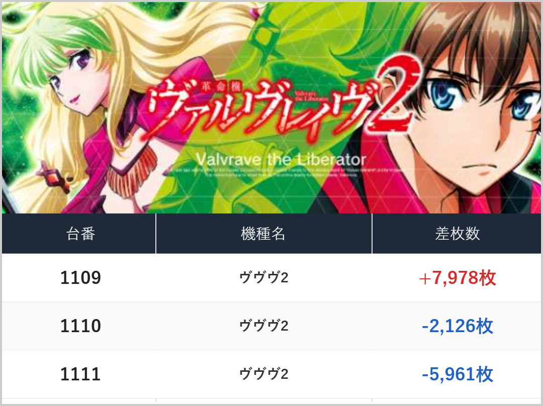 【3台並び②】:ヴヴヴ2(1109-1111番台)【平均-36枚】