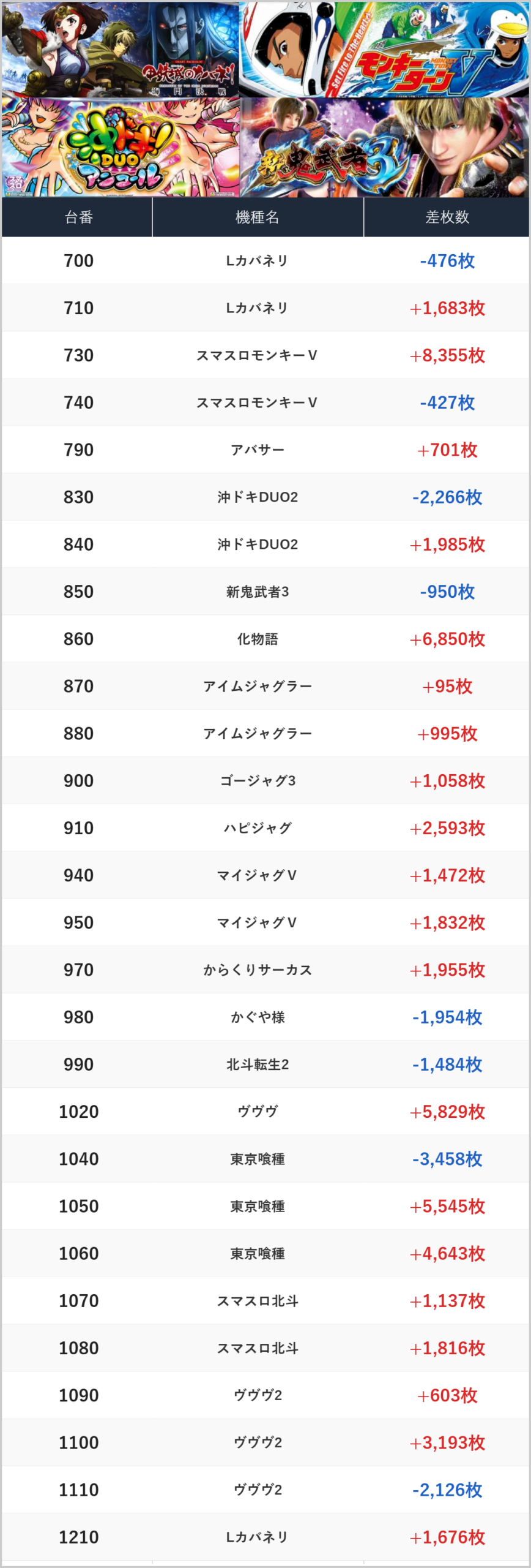 ニブイチ機種が3機種、サブイチ機種は11機種、ヨブイチ機種が4機種とド派手に仕掛けていました!