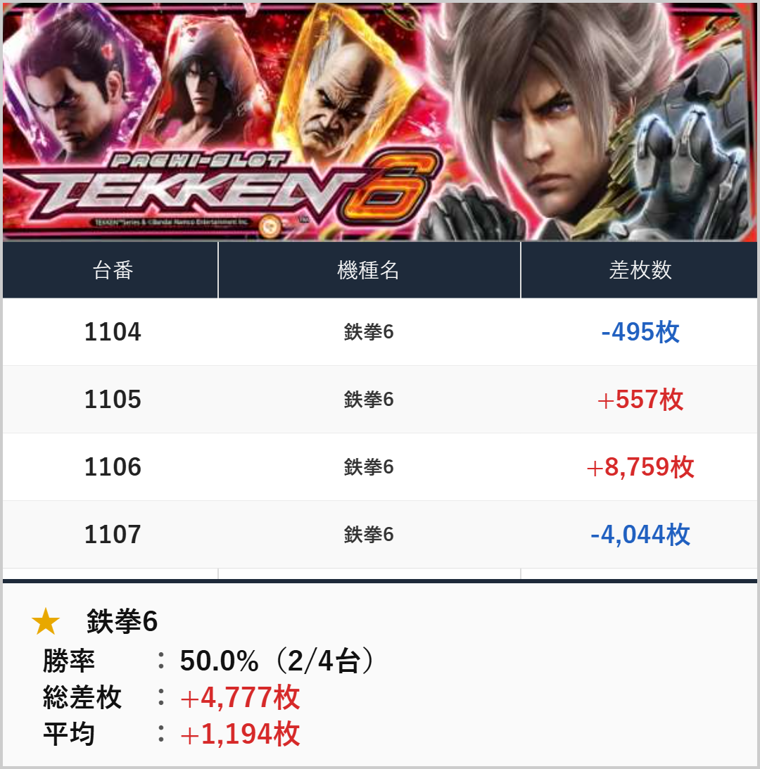 【全台系】:鉄拳6(4台)【平均+1,194枚】