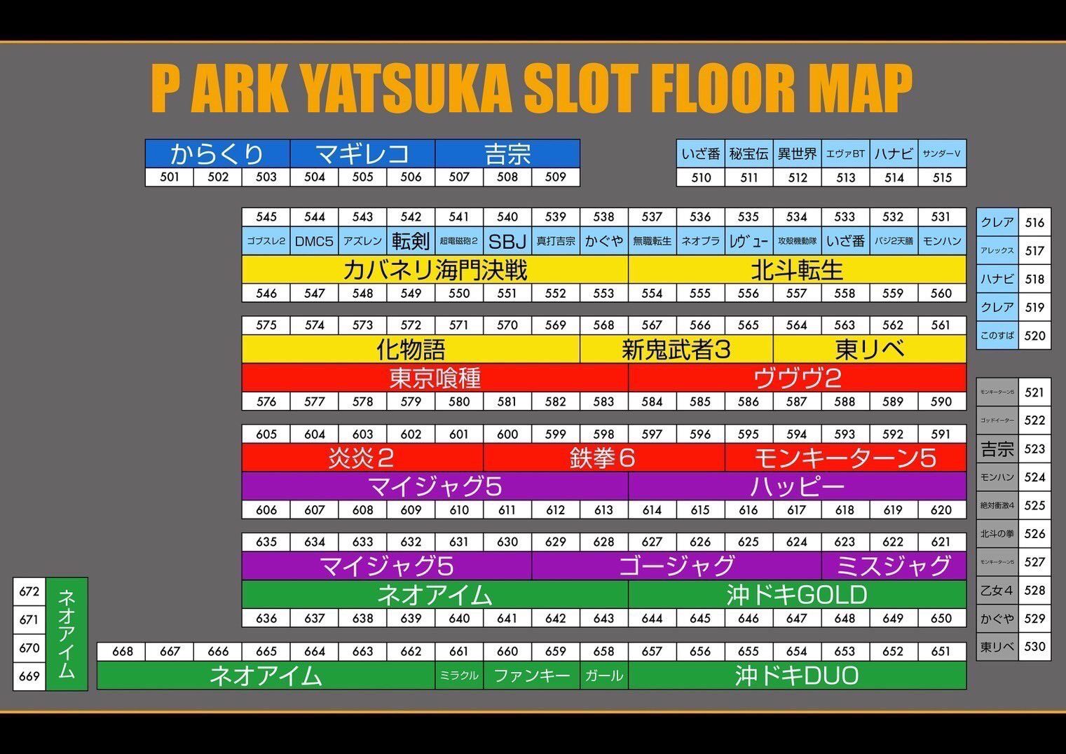 ジャグラーコーナーから【ゴージャグ&マイジャグ】の跨ぎで4台並びの仕掛け。