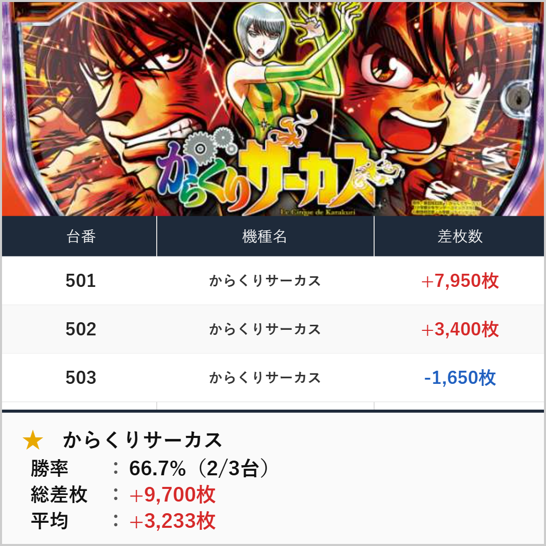 並び+全台系:からくりサーカス(3台)【平均+3,233枚】