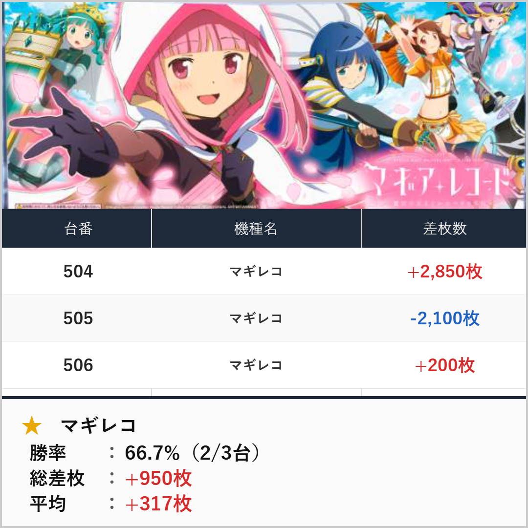 並び+全台系:マギレコ(3台)【平均+317枚】