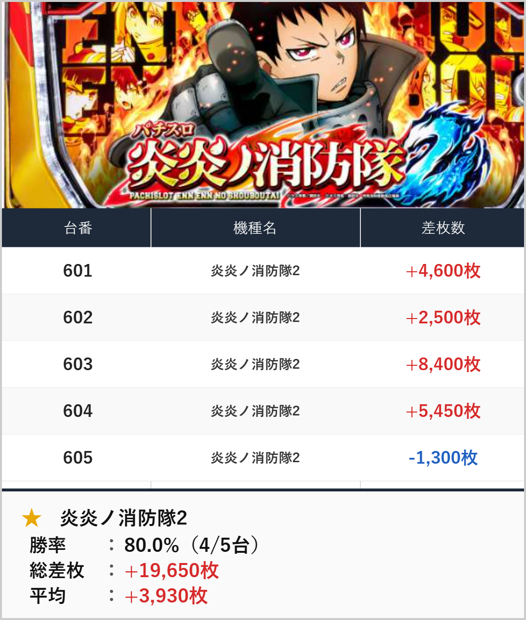 並び+全台系:炎炎ノ消防隊2(5台)【平均+3,930枚】