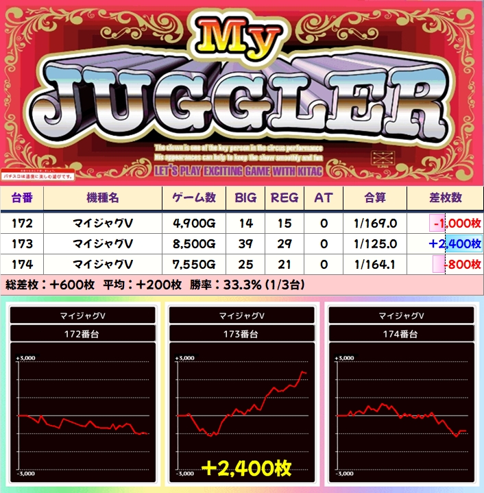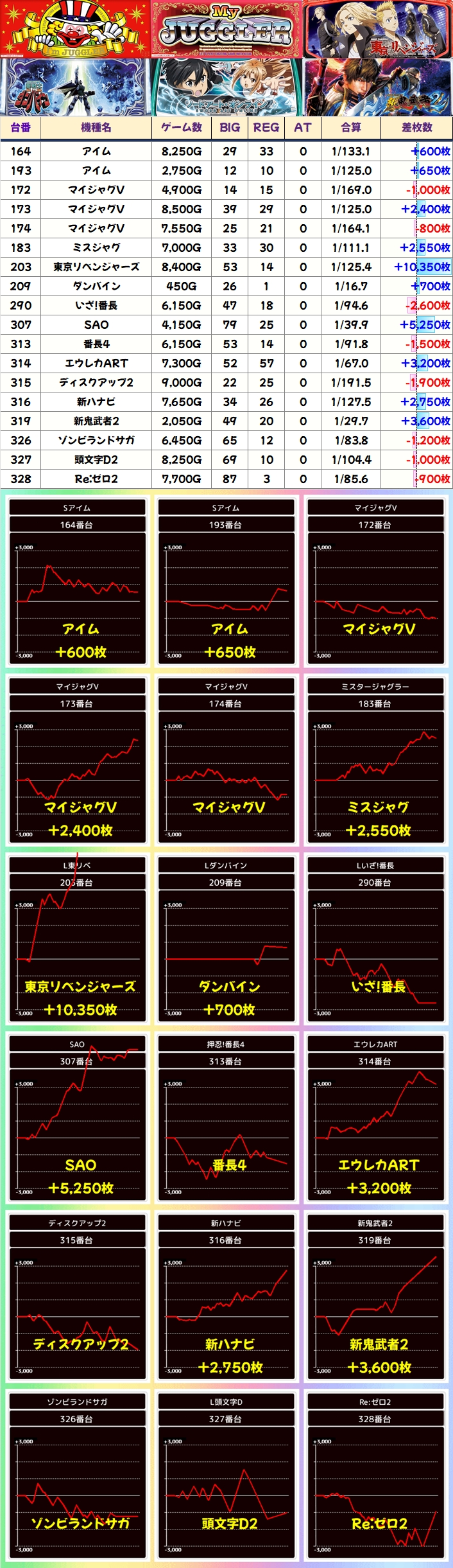 今回もジャグラーから全台系濃厚機種を確認でき、『7のつく日=ジャグラーに全台系』という傾向は今後も続くと考えて間違いなさそうです。