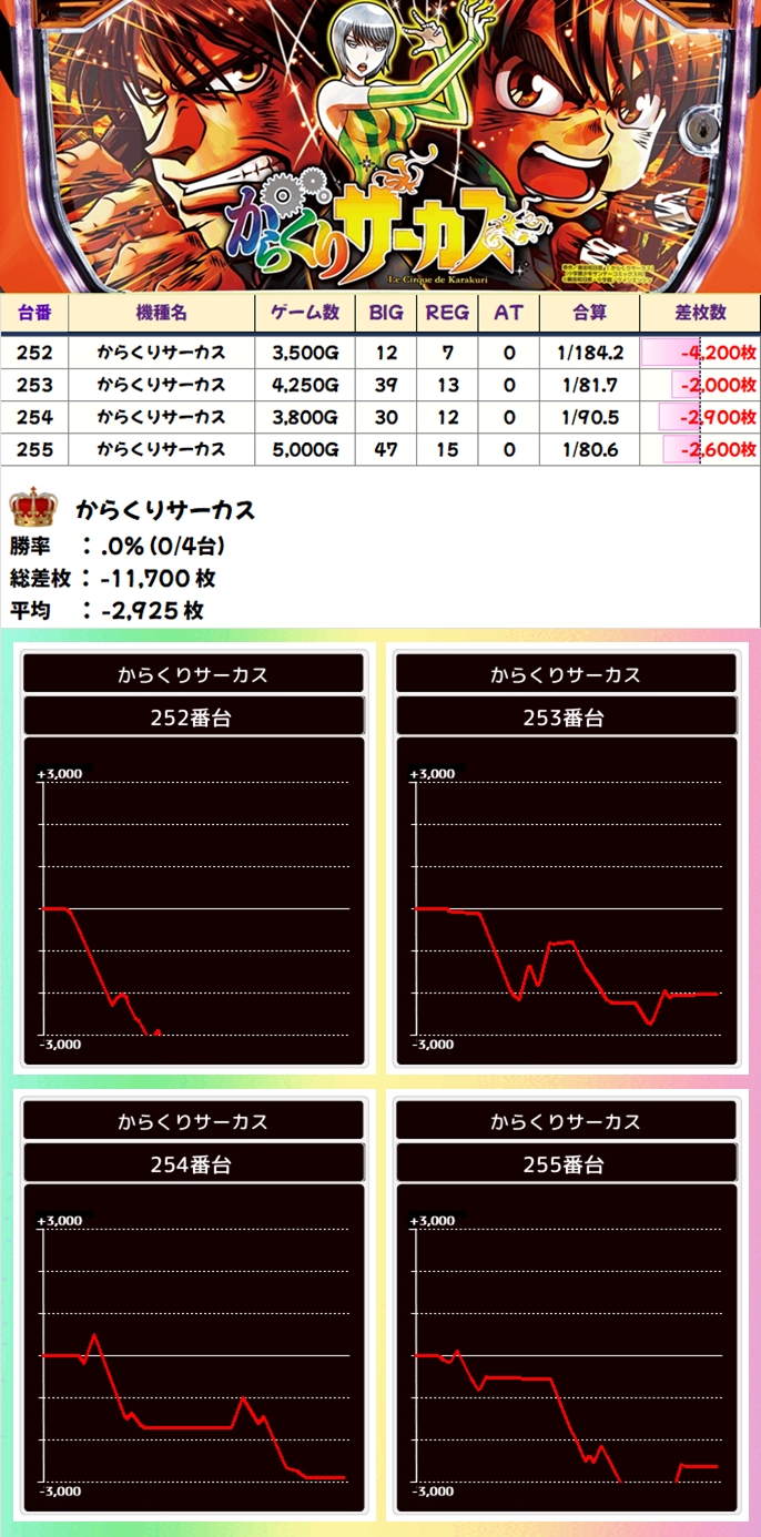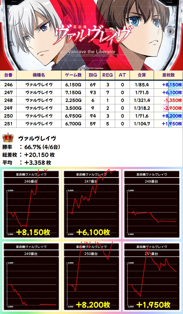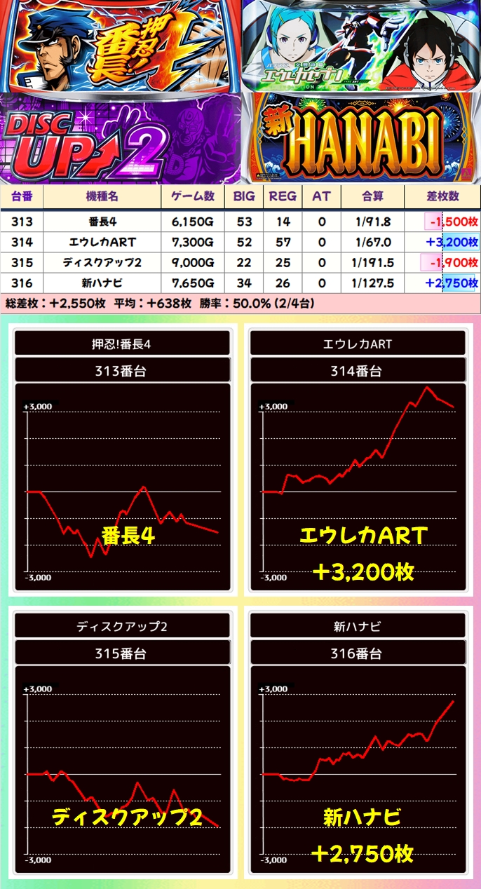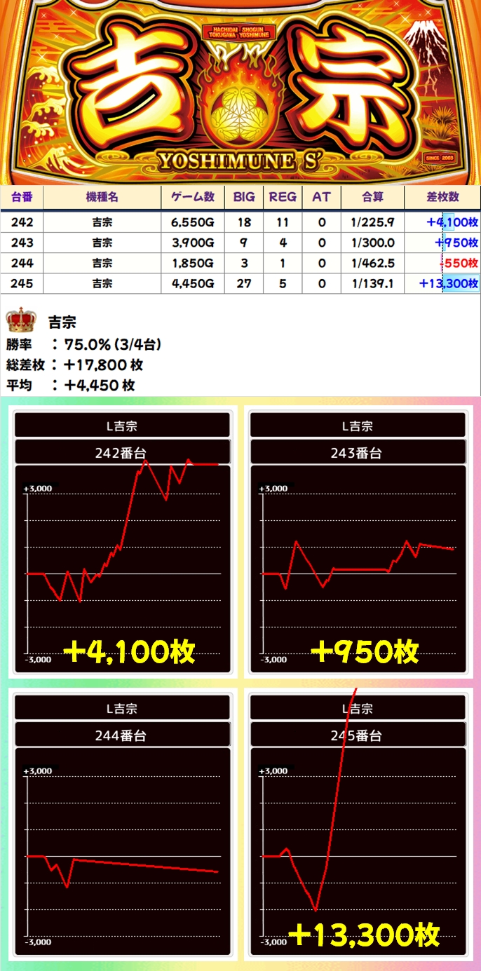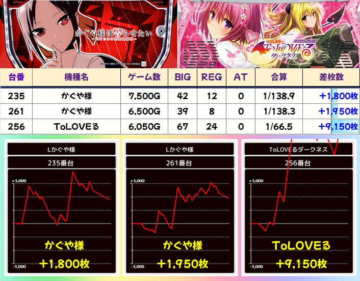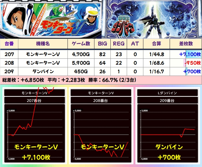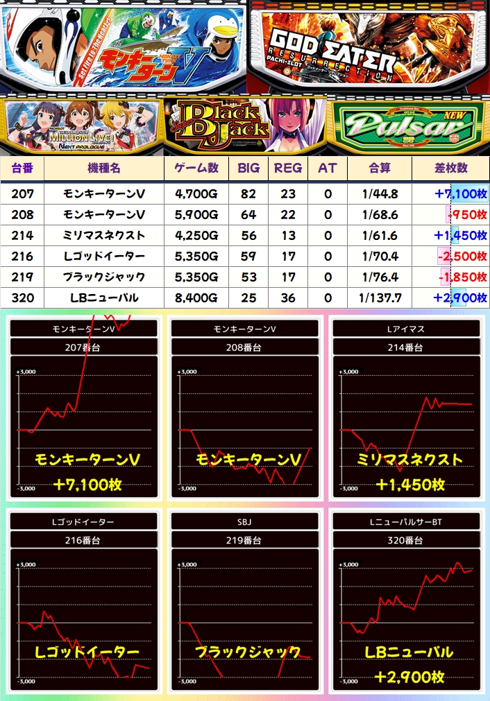 そんな、強イベ日と旧イベ日が重なった7のつく日でしたが、今回も多数のお宝台が用意されていたようで、ホール全体でしっかりプラス差枚を記録!