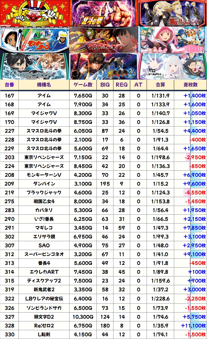 以前の強イベ日は大都機種が狙い目だったことを考えると、今後も引き続き大都機種を絡めた並びが用意されるかもしれませんね。