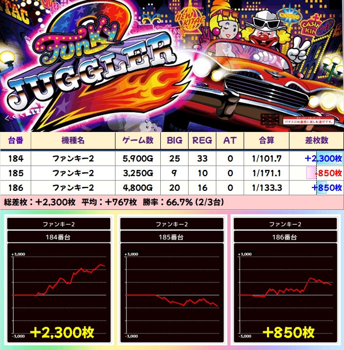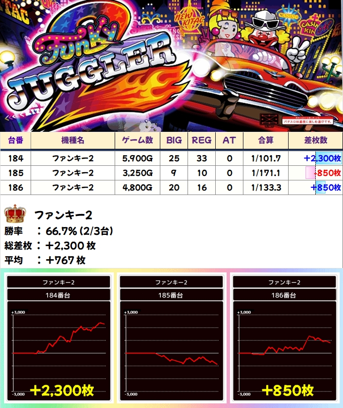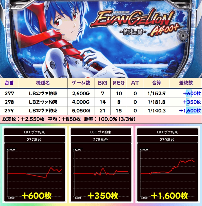 冒頭でも触れた通り、水曜日は狙い目機種以外の仕掛けも注目ポイントとなっており、今回は3台設置の「LBエヴァ約束」と「ファンキー」が全台系濃厚に!