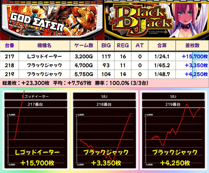 山佐機種は3台設置の「スーパーブラックジャック」が1/2以上濃厚の結果になっており、3台中2台が優秀な結果に!