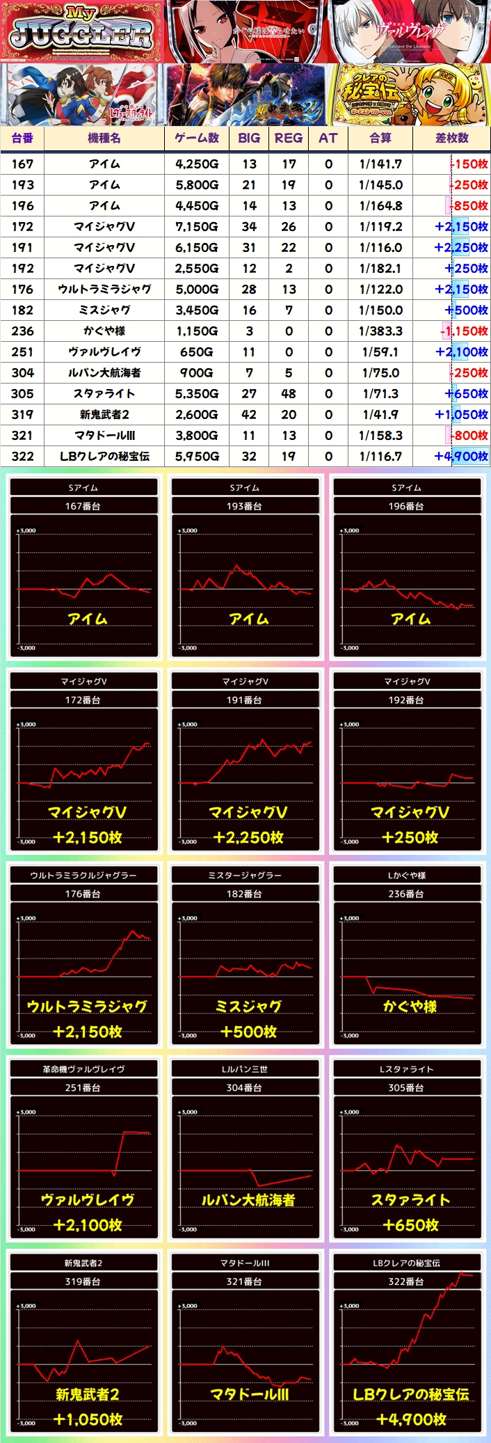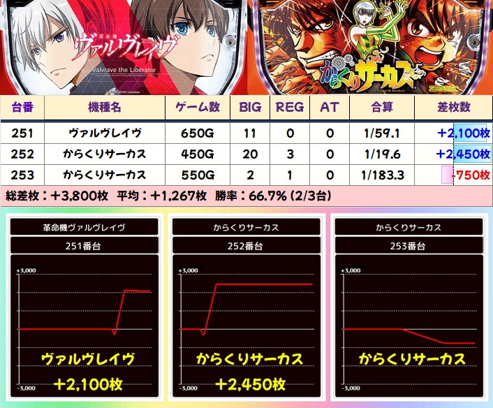 そんな、新しい傾向を確認できるようになった水曜日でしたが、今回は多数の仕掛けが用意されていたようで、ホール全体でも余裕のプラス差枚を記録!