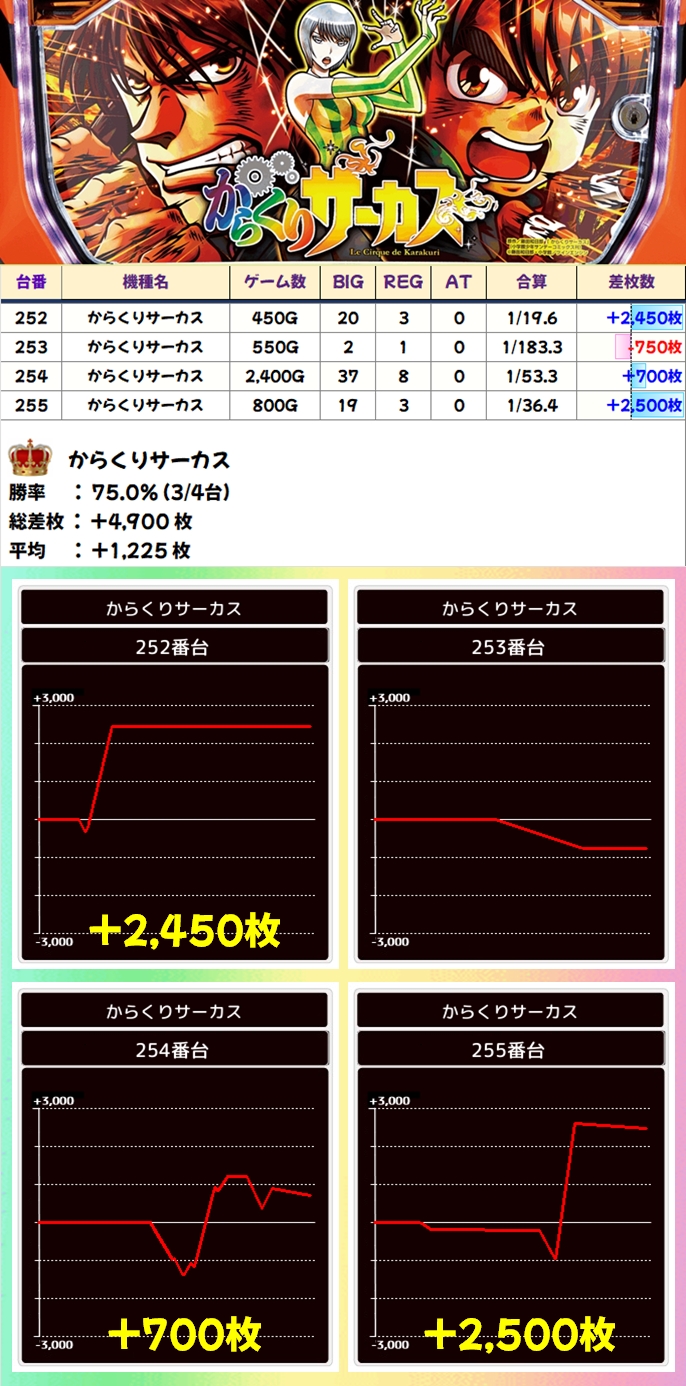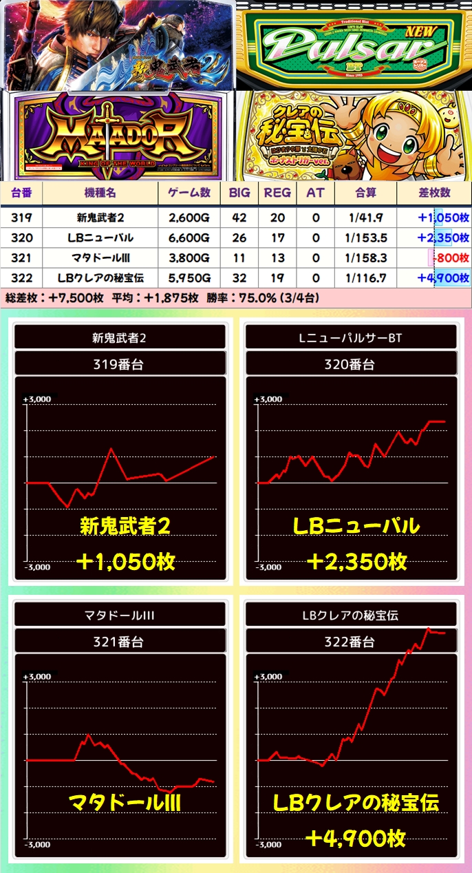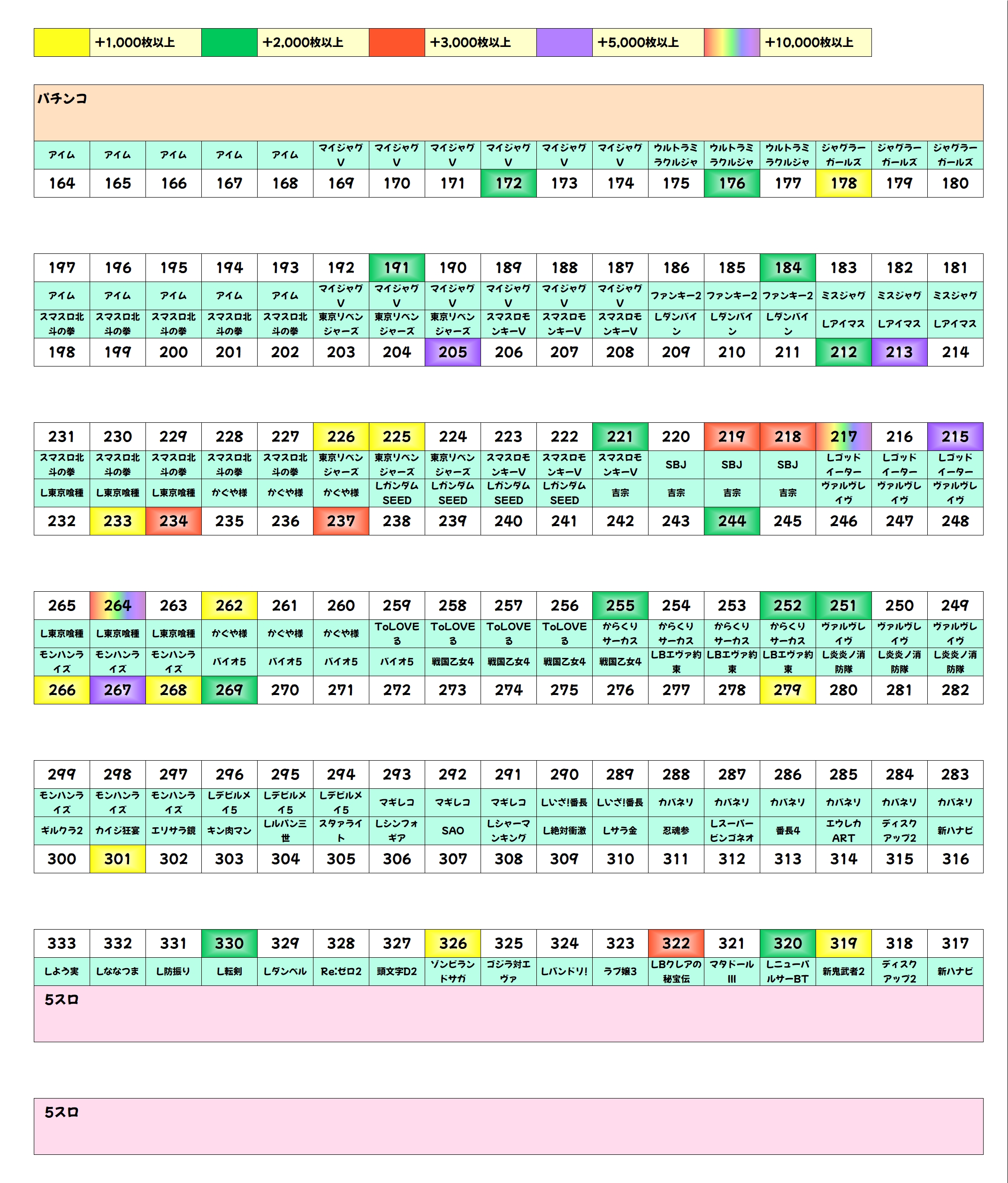 狙い目機種はもちろん他の機種より期待できるのですが、ここ最近は新たな傾向を確認できており、狙い目機種以外にも全台系or1/2系濃厚機種を確認できています。