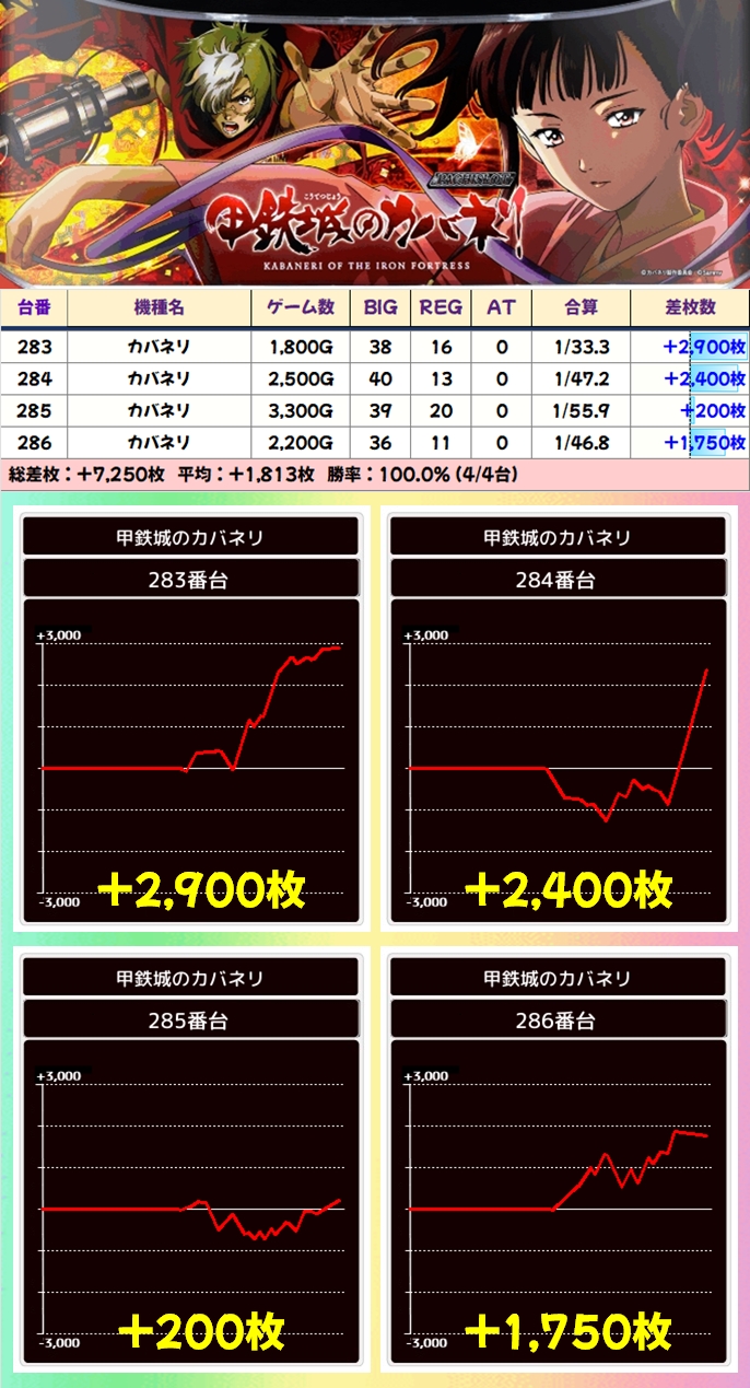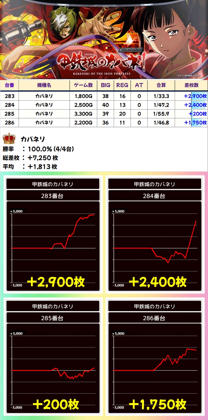 冒頭でも触れた狙い目機種以外の仕掛けですが、今回はサミー機種の「カバネリ」が全台系の対象になった模様!