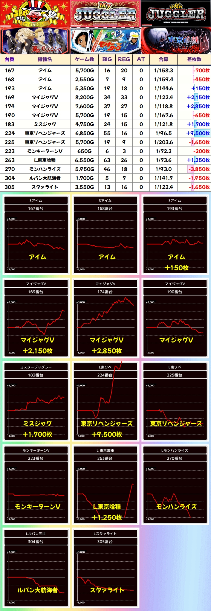 なお、先月から水曜日に新たな傾向が表れており、狙い目機種以外にも全台系or1/2系の仕掛けが用意されるように!