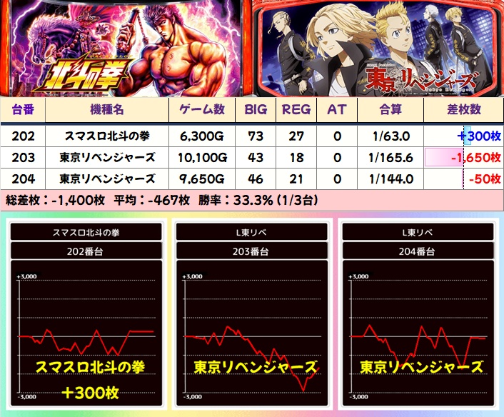 【3台並び】北斗の拳・東リベ(202-204番台)