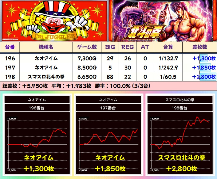 結果が良かったので先出しをしますが、今回も平均+210枚と優秀な成績を残してくれました!