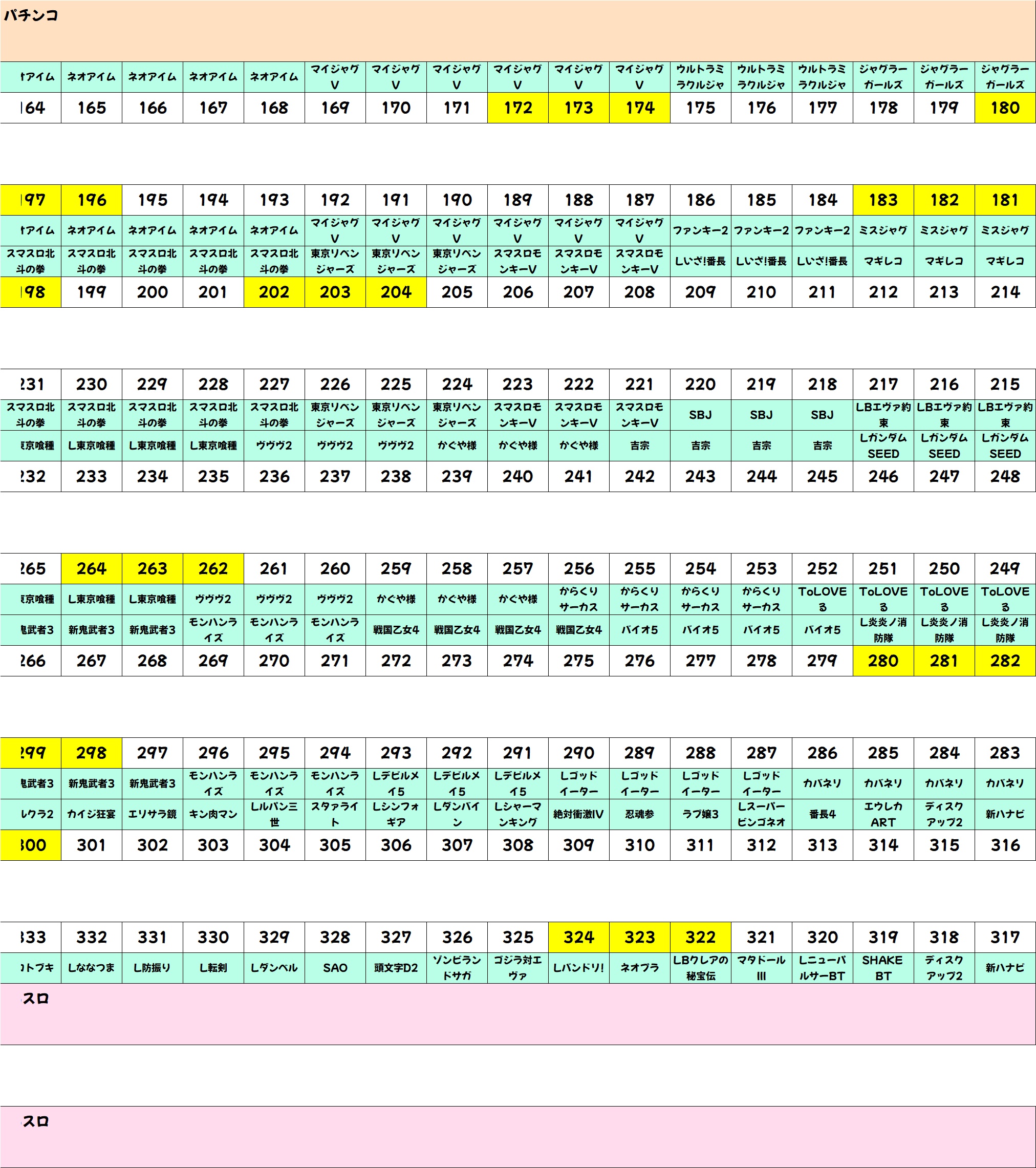 狙い目の機種としては事前ポストでも触れているハイスペックスマスロ「東京喰種」「ヴァルヴレイヴ2」「かぐや様」「ガンダムSEED」「吉宗」「からくりサーカス」「ToLOVEる」の7機種!