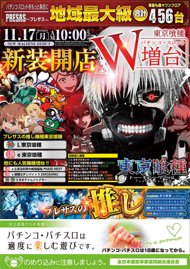 中でも注目なのが、この日に増台された「東京喰種」!良番ならぜひ狙いたいところですね!