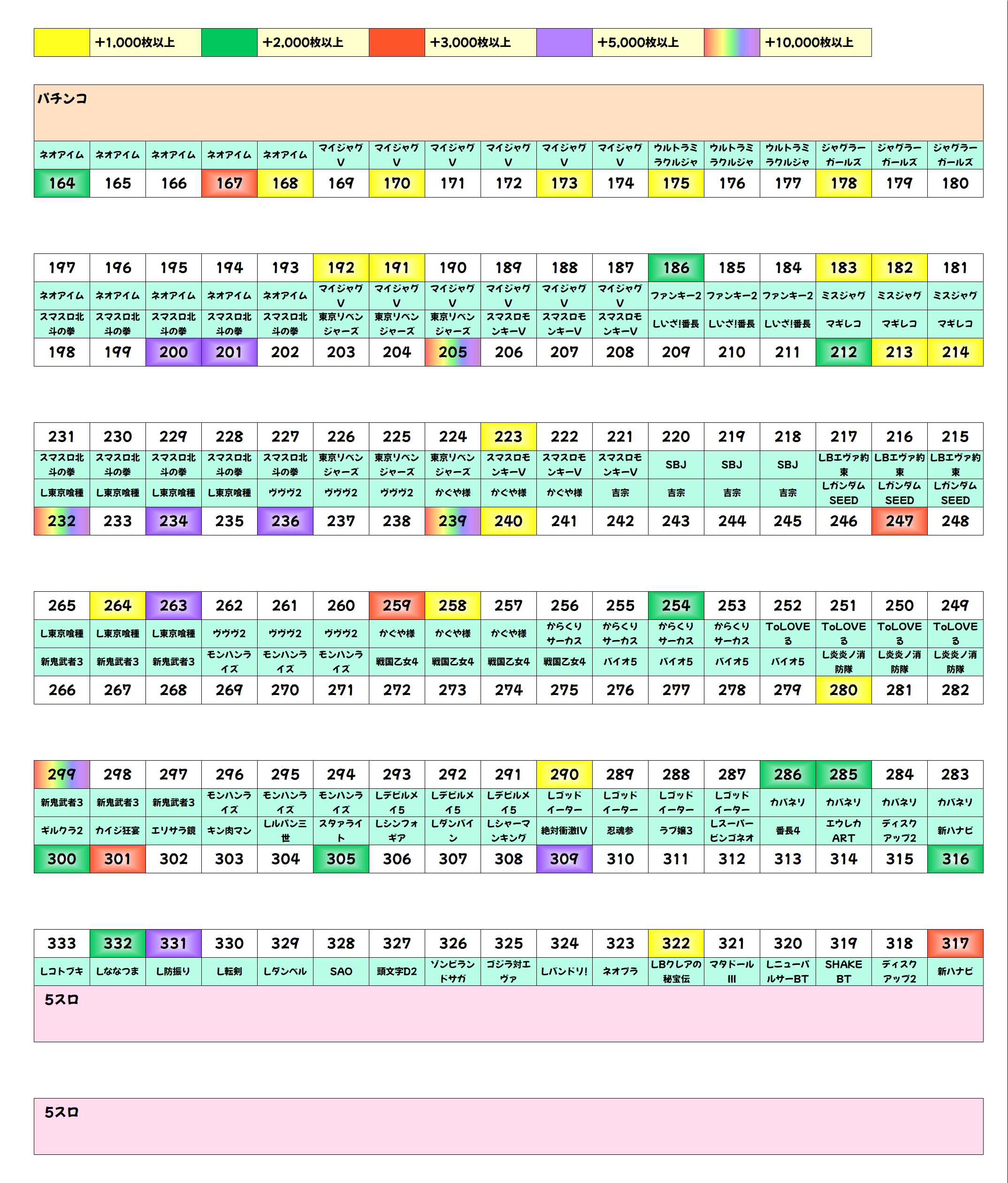 また、店舗の推し機種「かぐや様」の万枚、最新機種「ヴヴヴ2」の+9000枚クラスなども見逃せないポイントですね!