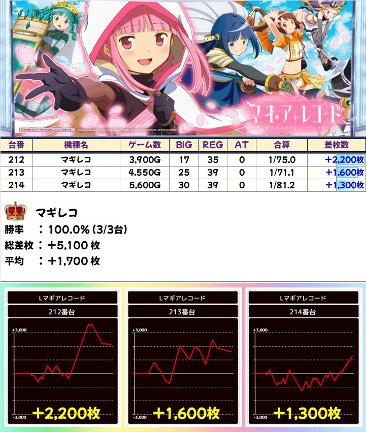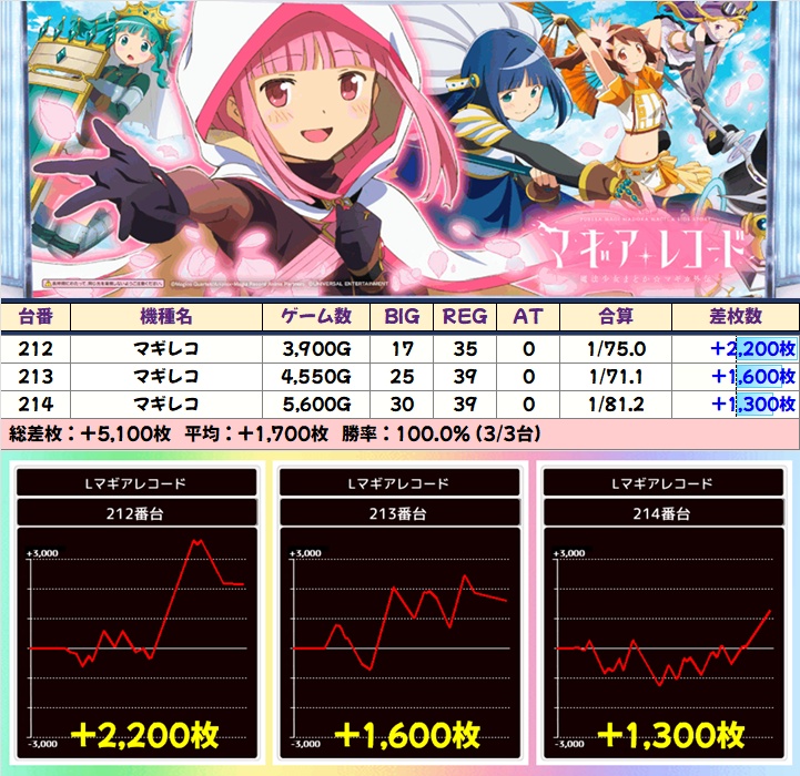 【全台系濃厚】マギレコ(3/3台+)➡平均+1,700枚