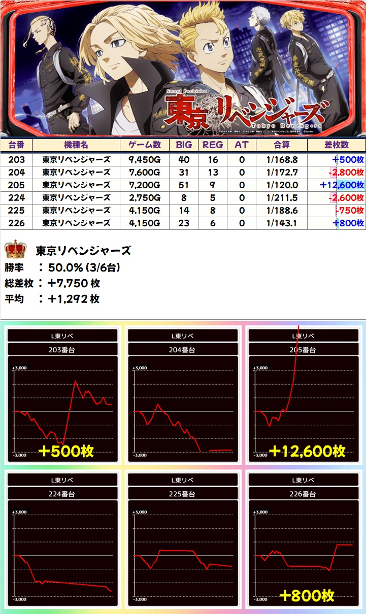 【1/2系濃厚】東京リベンジャーズ(3/6台+)➡平均+1,292枚