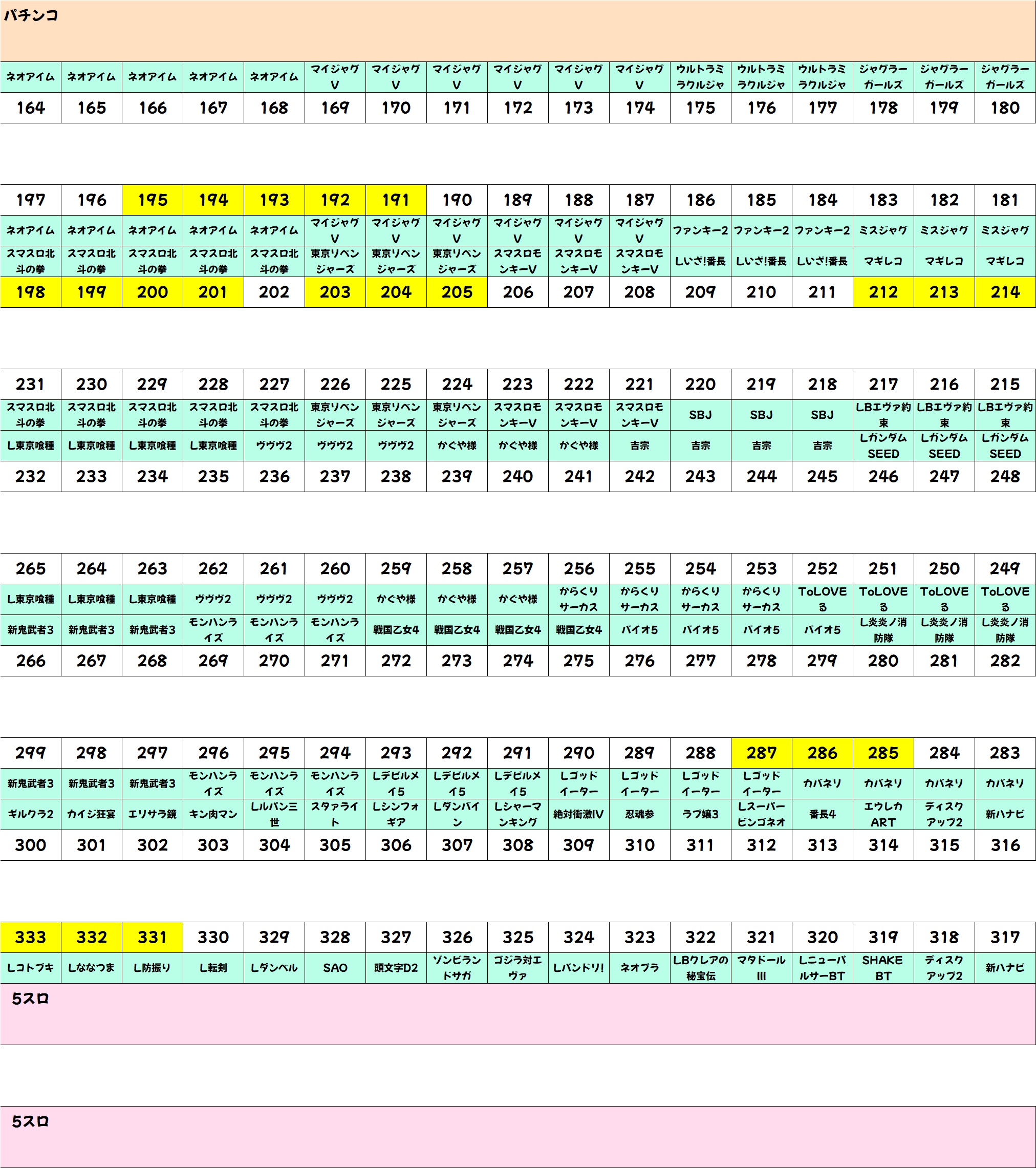 【5台並び】マイジャグV・ネオアイム(191-195番台)
