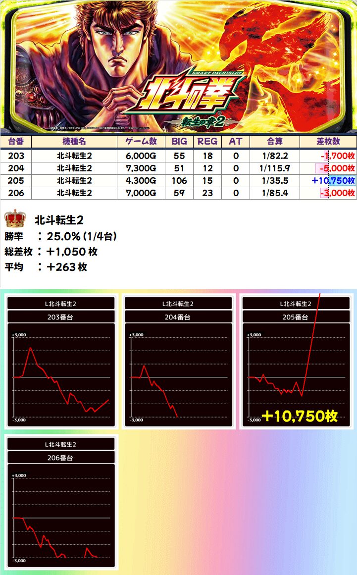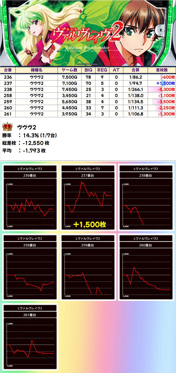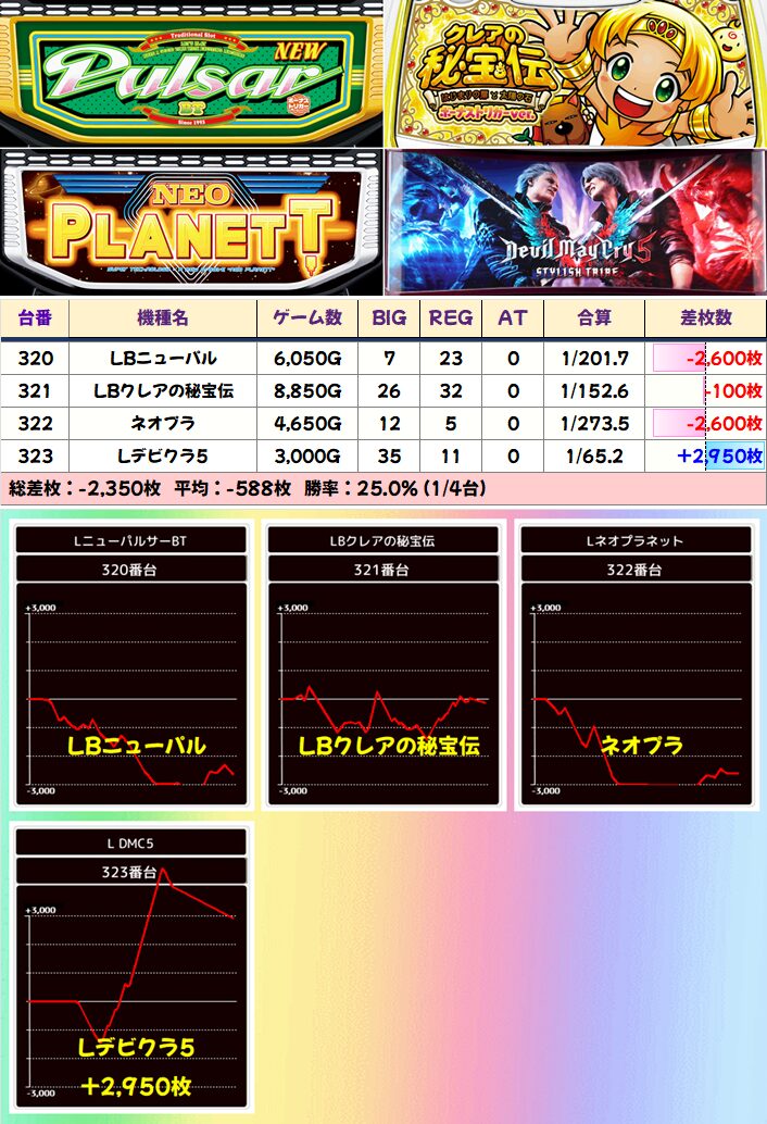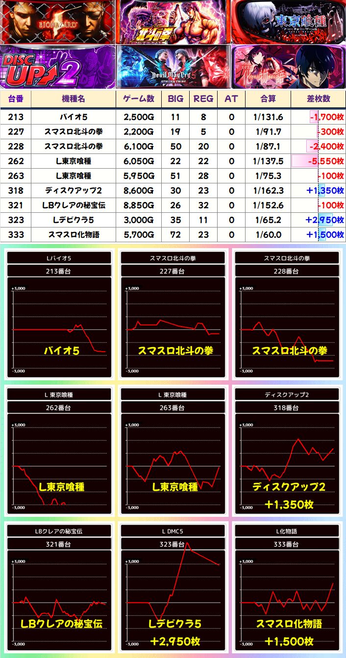 単発はやや不発気味も、バラエティ機種「デビクラ5」の+3000枚クラスなどの優秀台を確認!