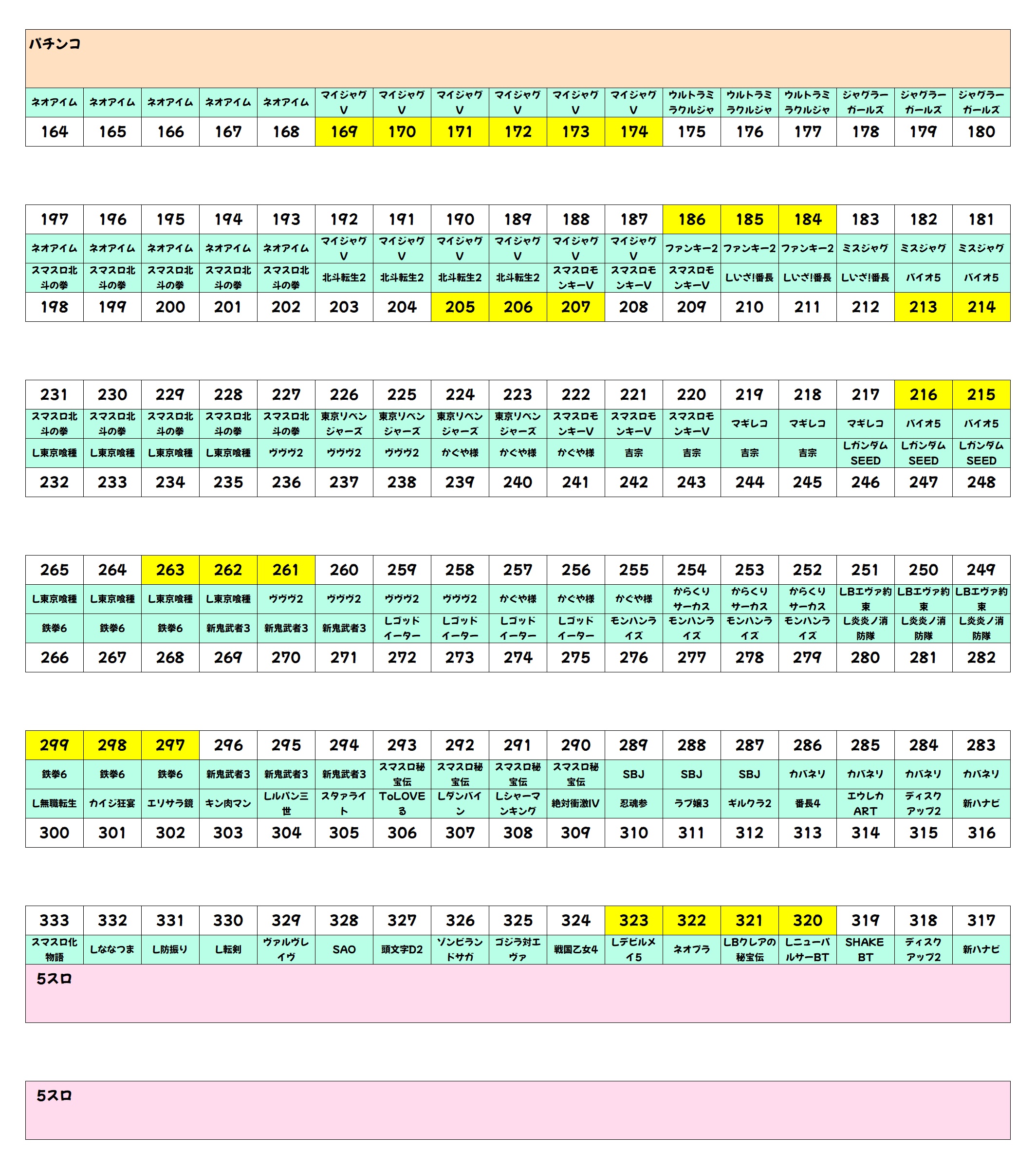 また、定番の機種マタギおよび島マタギ(213-215番台)の並びも確認!今後も並びを探す際はその点に注目してデータをチェックするようにしましょう。
