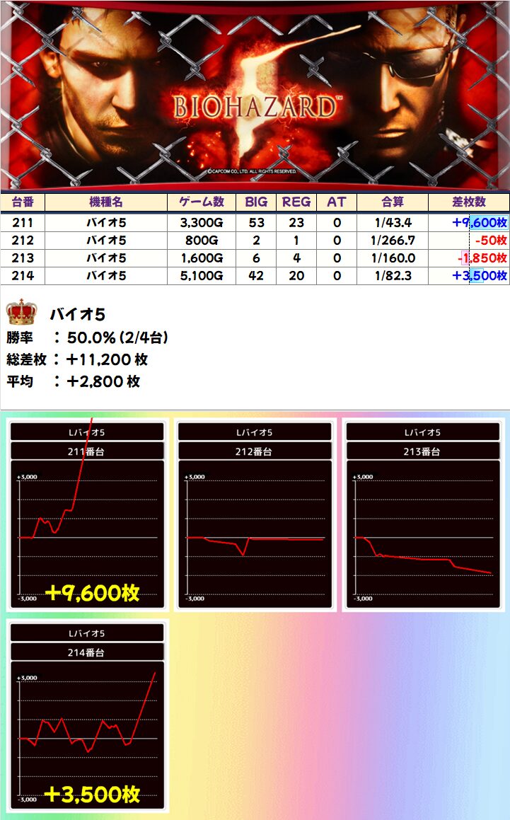 中でも店舗の推し機種「新鬼武者」および「バイオ5」「Lゴッドイーター」には+8000枚オーバーのモンスター台を確認!