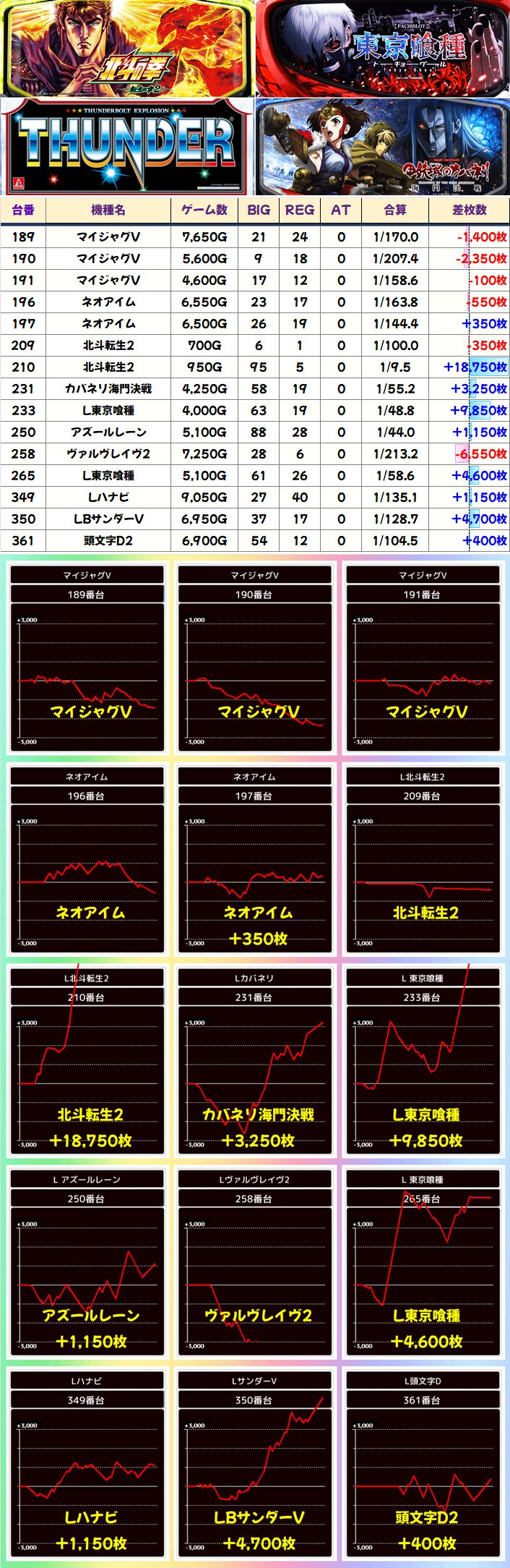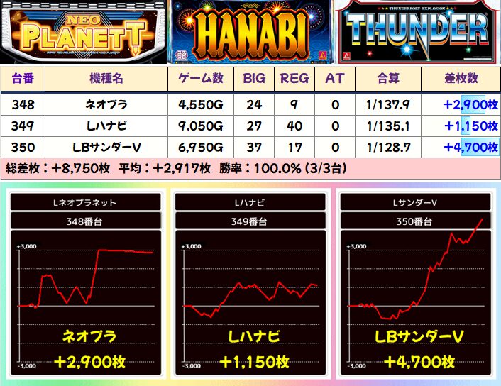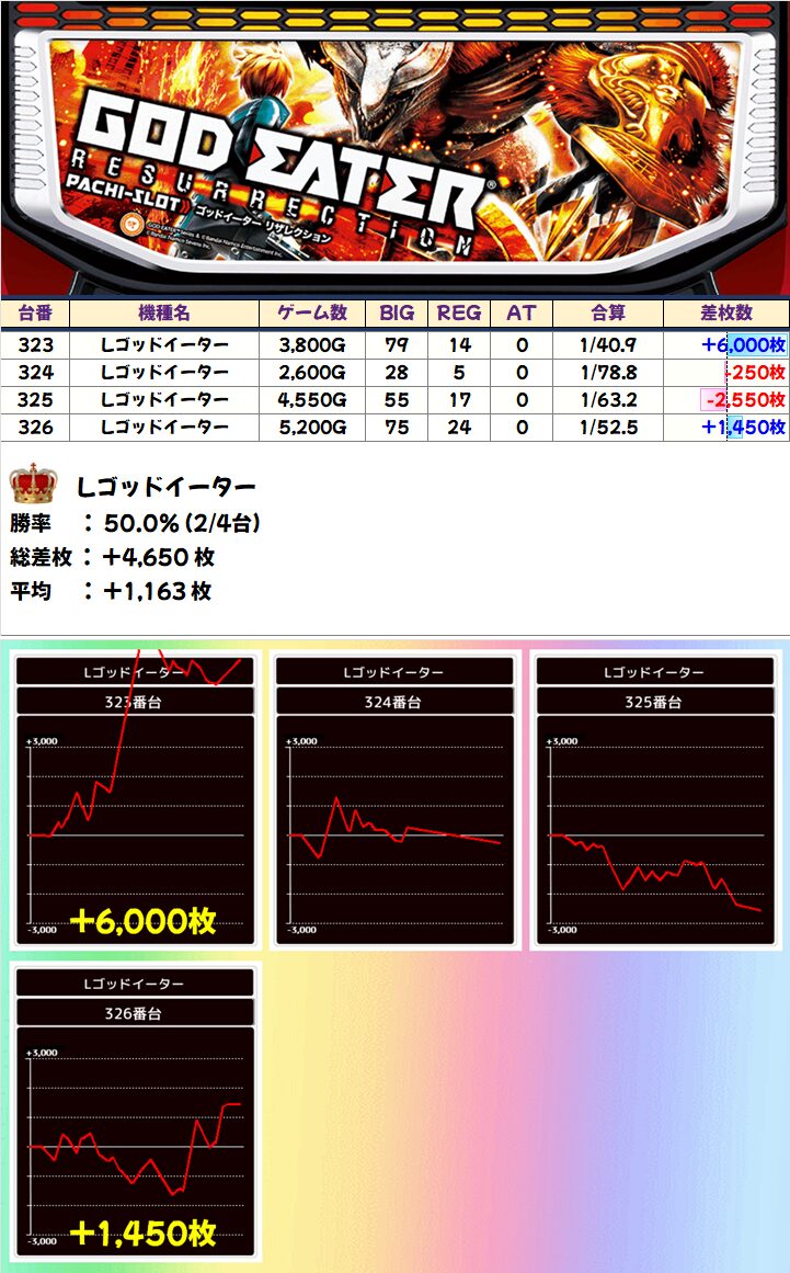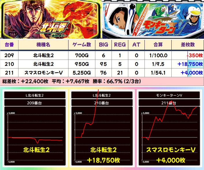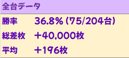 4月1週目の平均+416枚に続き、2週目の今回も平均+196枚&総差枚+4万枚とバッチリ結果を残しました!