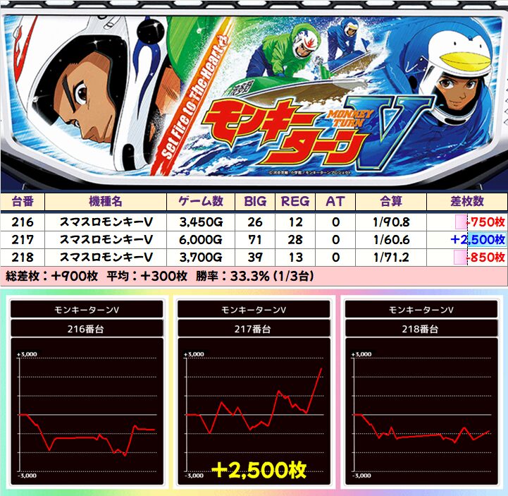 狙い目である山佐系機種から「モンキーV」「鉄拳6」「ゴッドイーター」「SBJ」と3台以上設置の全機種が仕掛け対象に!大盤振る舞いですね~!