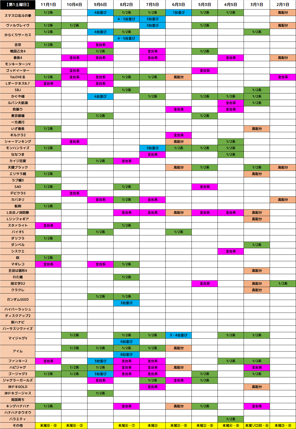 11月1日(土)│エスパス赤坂見附│10機種以上の全系や高配分機種があり台平均は220枚超のプラス!第1土曜おなじみの優秀末尾も複数あり!