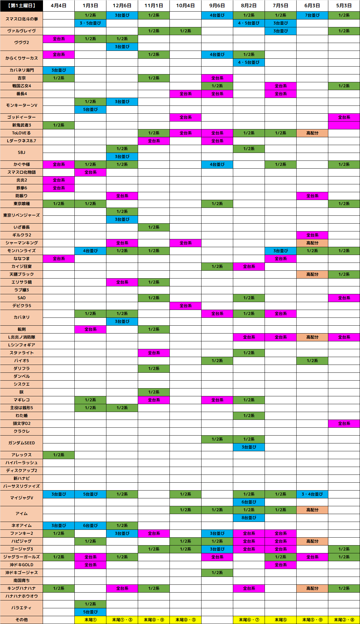 1月3日(土)│エスパス赤坂見附│第1土曜の末尾仕掛けは継続!!高配分以上の優秀機種も10機種以上あり!平均2000枚超の並びも複数!