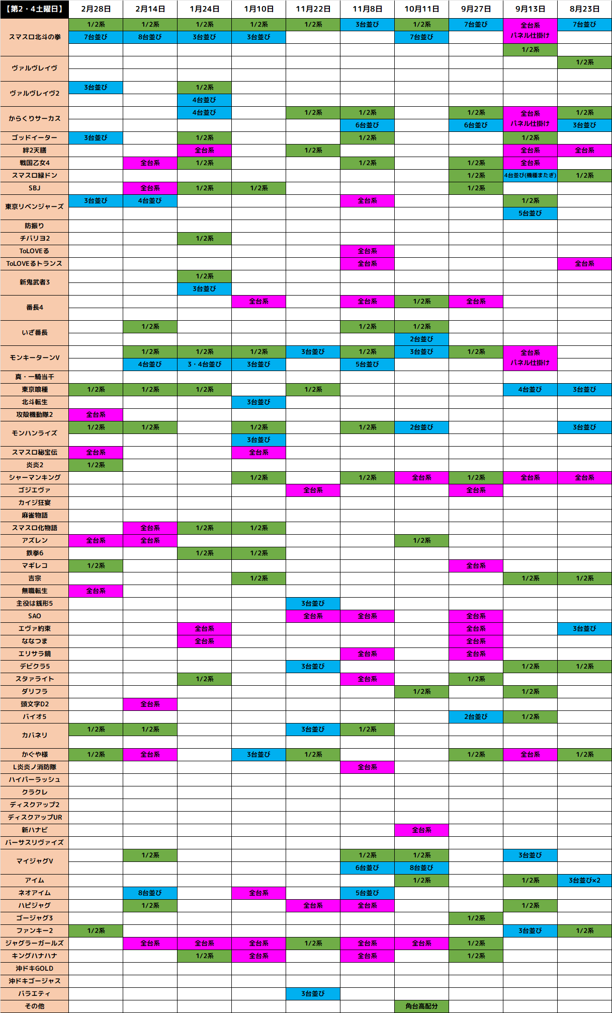8月9日(土)│エスパス赤坂見附│定番の優秀列は今回も確認!その他にも全台系や高配分機種複数!ジャグから人気機種、最新台まで幅広い仕掛け!