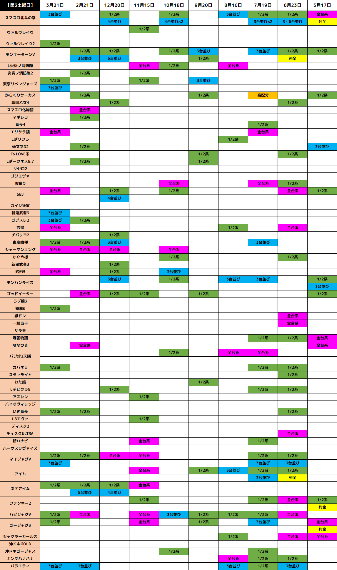 6月21日(土)│エスパス赤坂見附│総差枚13万5000枚超!第3土曜おなじみの列全複数やその他にも全系や高配分機種大量!独り言関連機種も絶好調!