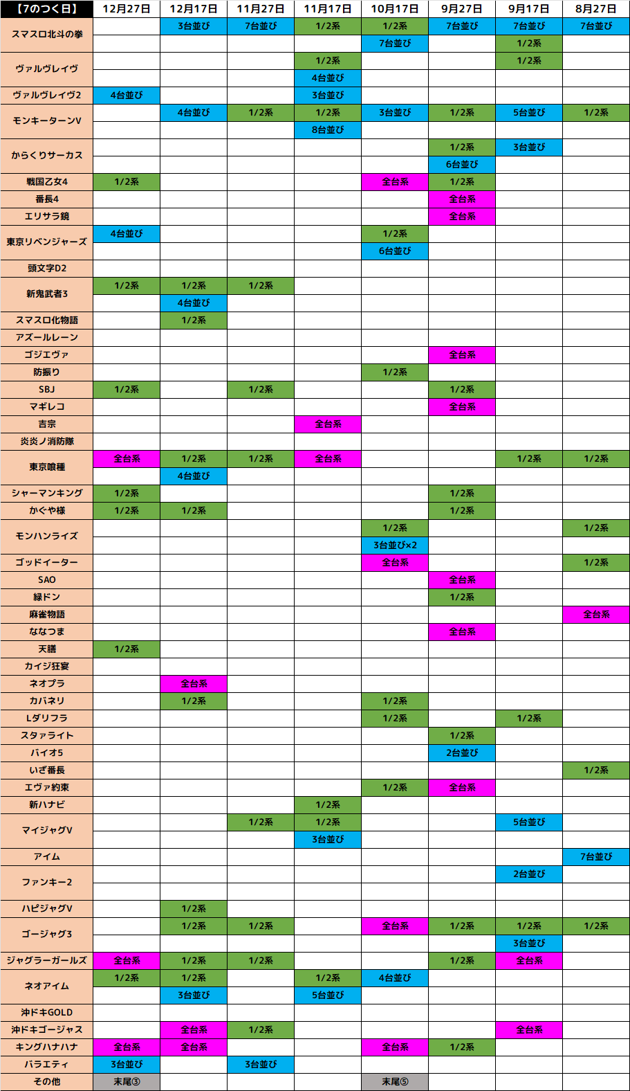 9月27日(土)│エスパス赤坂見附│7の日にちなんだ”全台系濃厚×7機種”および”7台並び×複数”!10機種以上の1/2系濃厚!など極上の仕掛けが乱れ飛び、平均+300枚オーバーの好結果に!