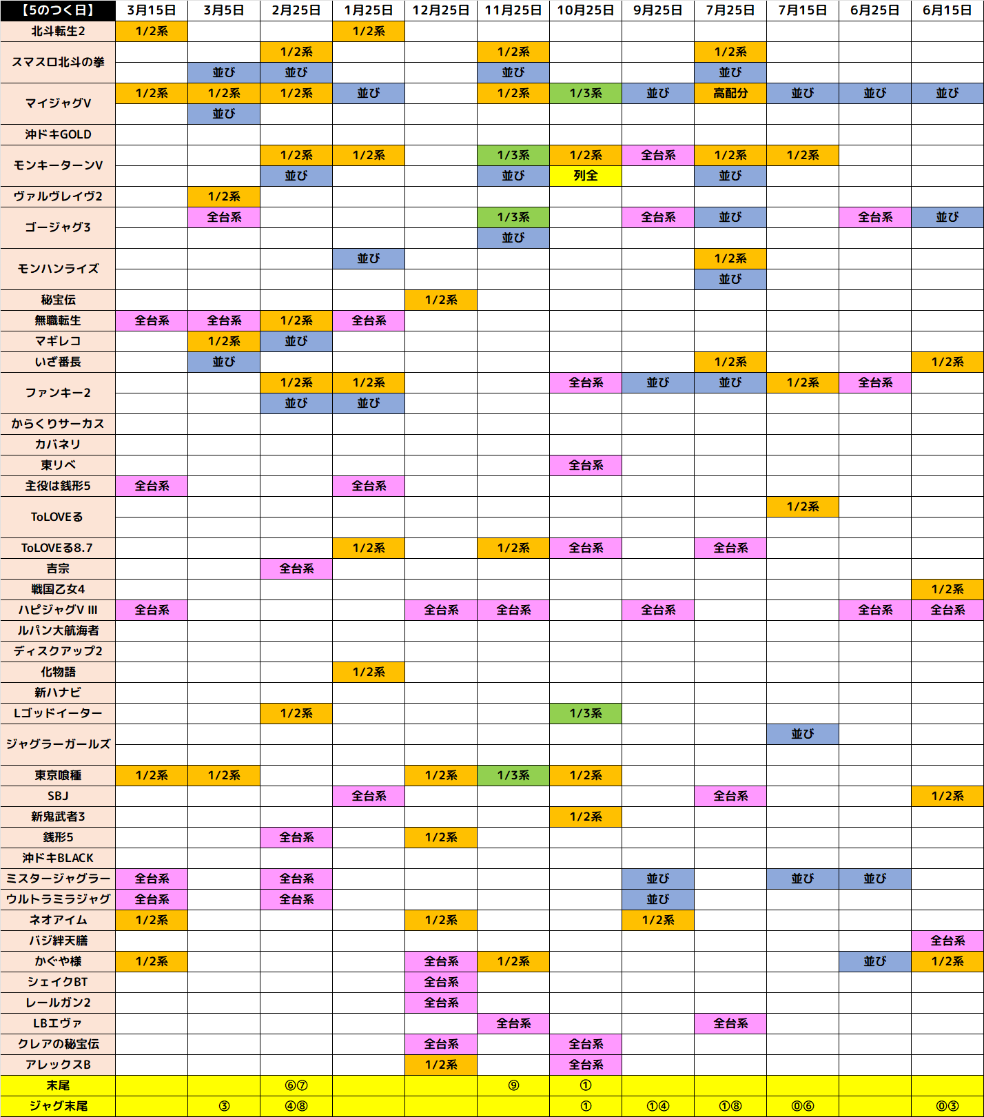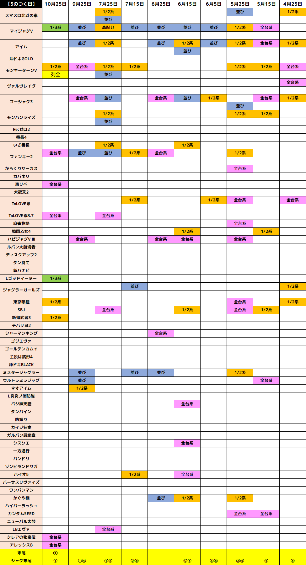 11月25日(火)│エスパス高田馬場│5のつく日で最もアツい25日!全台系や高配分が多数あり、5台並びも随所にアリ!もちろん単品優秀台も大量に!