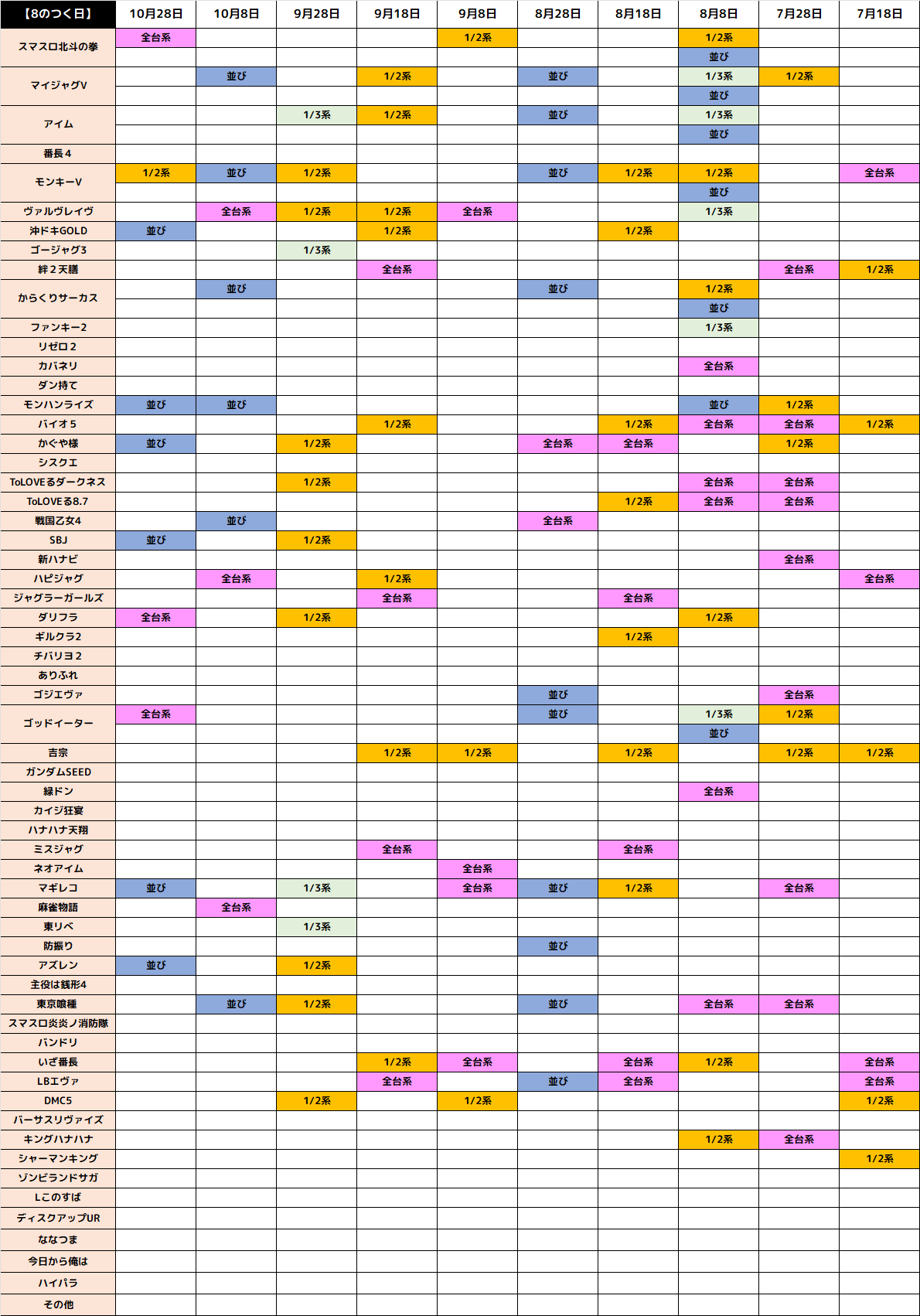 9月8日(月)│エスパス高田馬場│バババ機種から全系や単品優秀台複数あり!新台系や毎日機種にもお宝台複数確認!