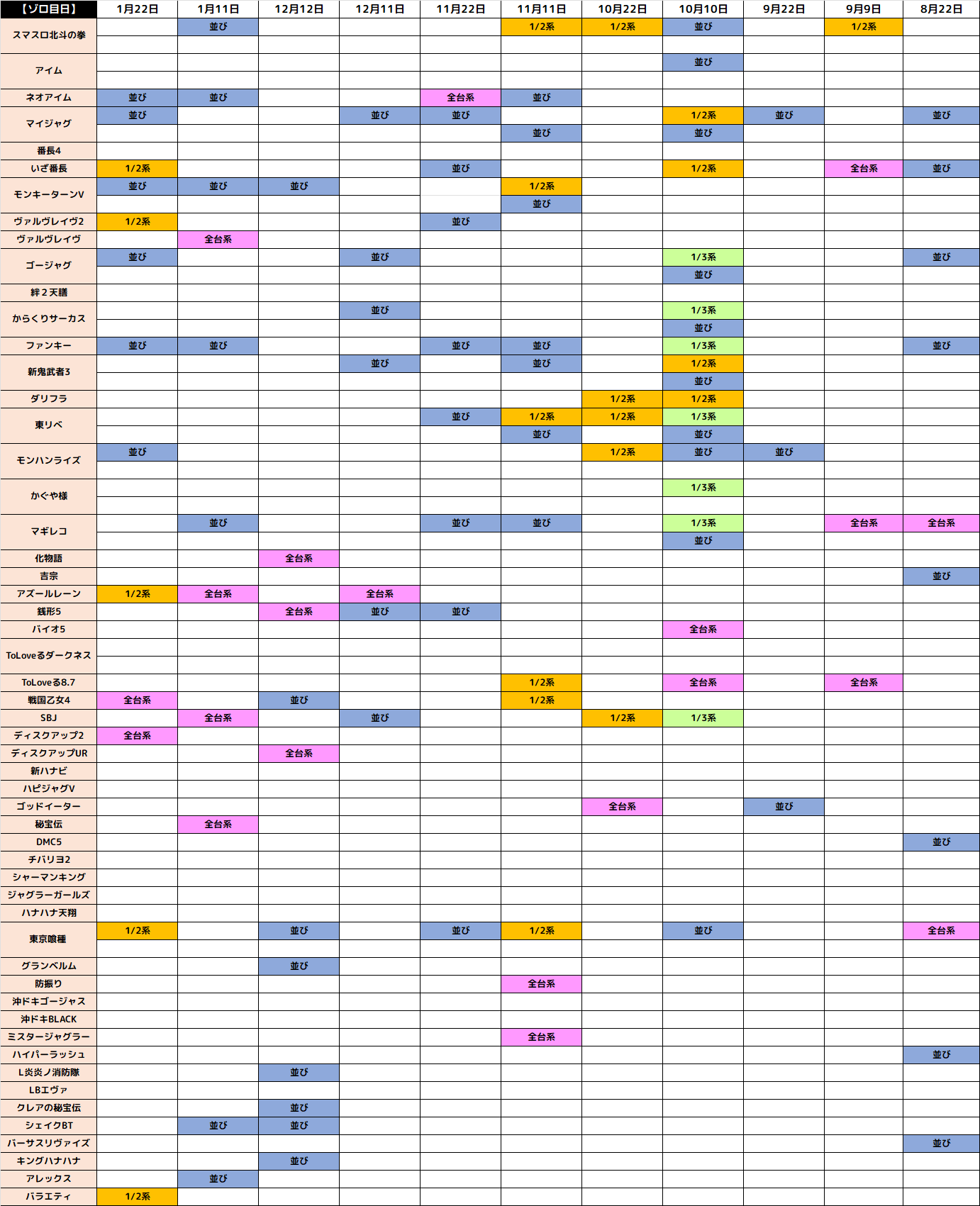 1月22日(木)│エスパス高田馬場│ゾロ目の日は優秀並びが多数アリ!もちろん全台系濃厚機種や高配分もしっかり用意!