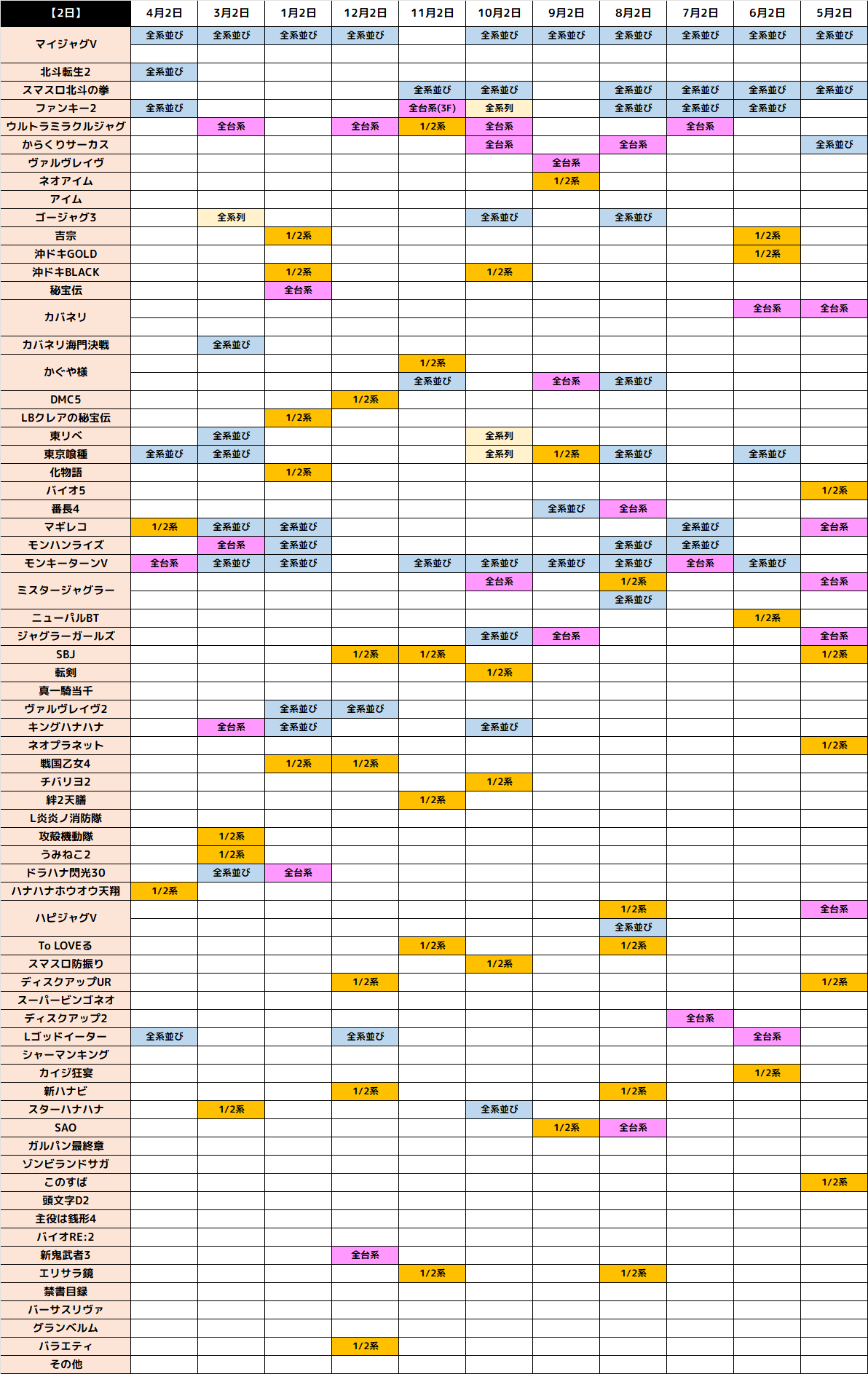3月2日(月)|エスパス新宿歌舞伎町|様々なフロアから全台系や1/2系、並び仕掛けが多数! ハナハナシリーズには王道の仕掛けが全て出現! 10日間ポスターにも仕掛けや単品が複数あり!