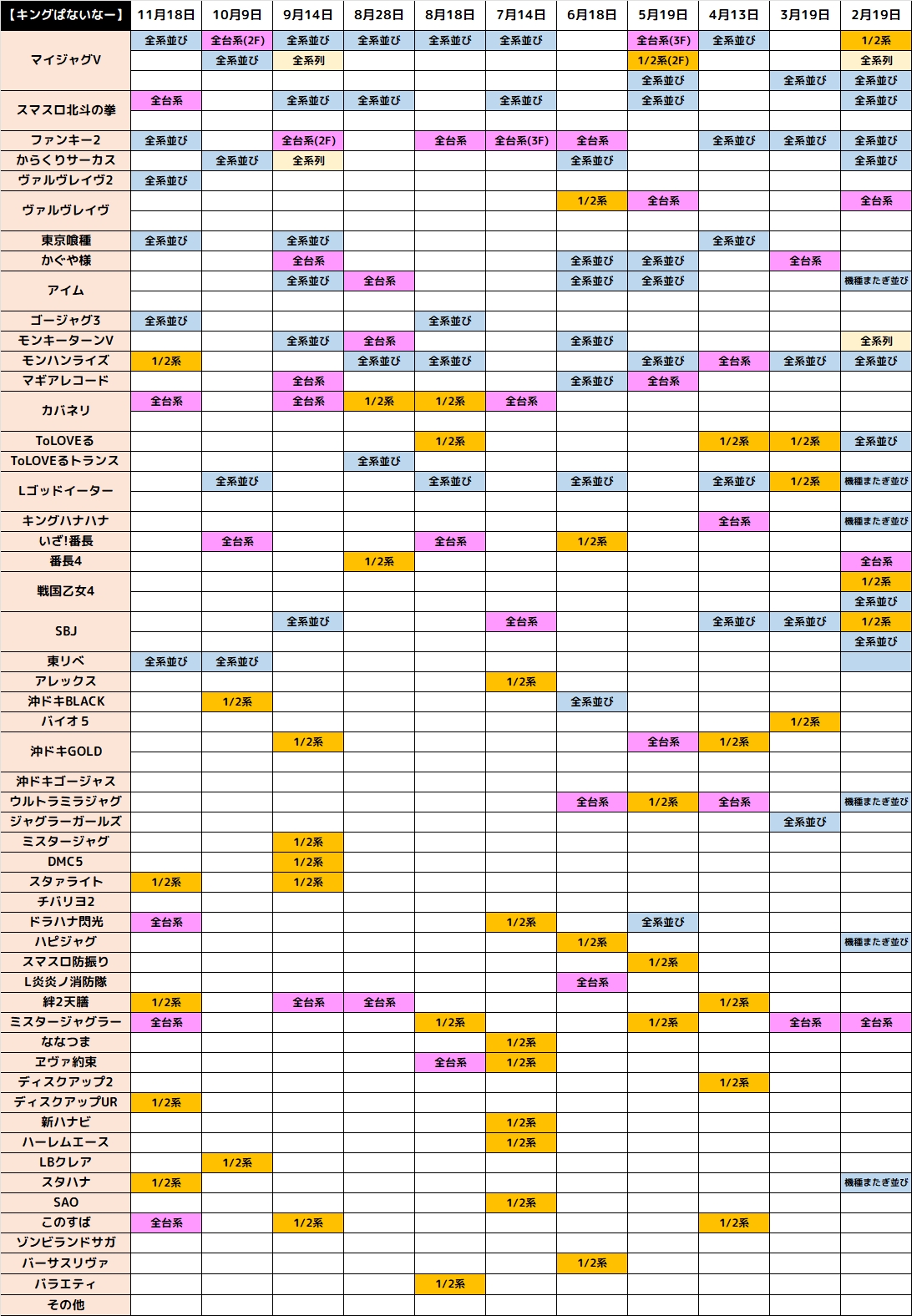 11月18日(火)|エスパス新宿歌舞伎町|激熱のゲリライベント「キングぱないなー」!今回も大量の全台系・1/2系が登場!ホール全体でも+17万枚オーバーと大量出玉が続出!