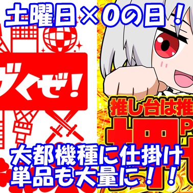 9月10日(水)|エスパス新宿歌舞伎町|大都機種「SAO」&「番長4」&「ゾンビランドサガ」の全台系濃厚!30Φ機種「スタハナ30」の全台系濃厚と⓪の日機種を軸に仕掛け充実!