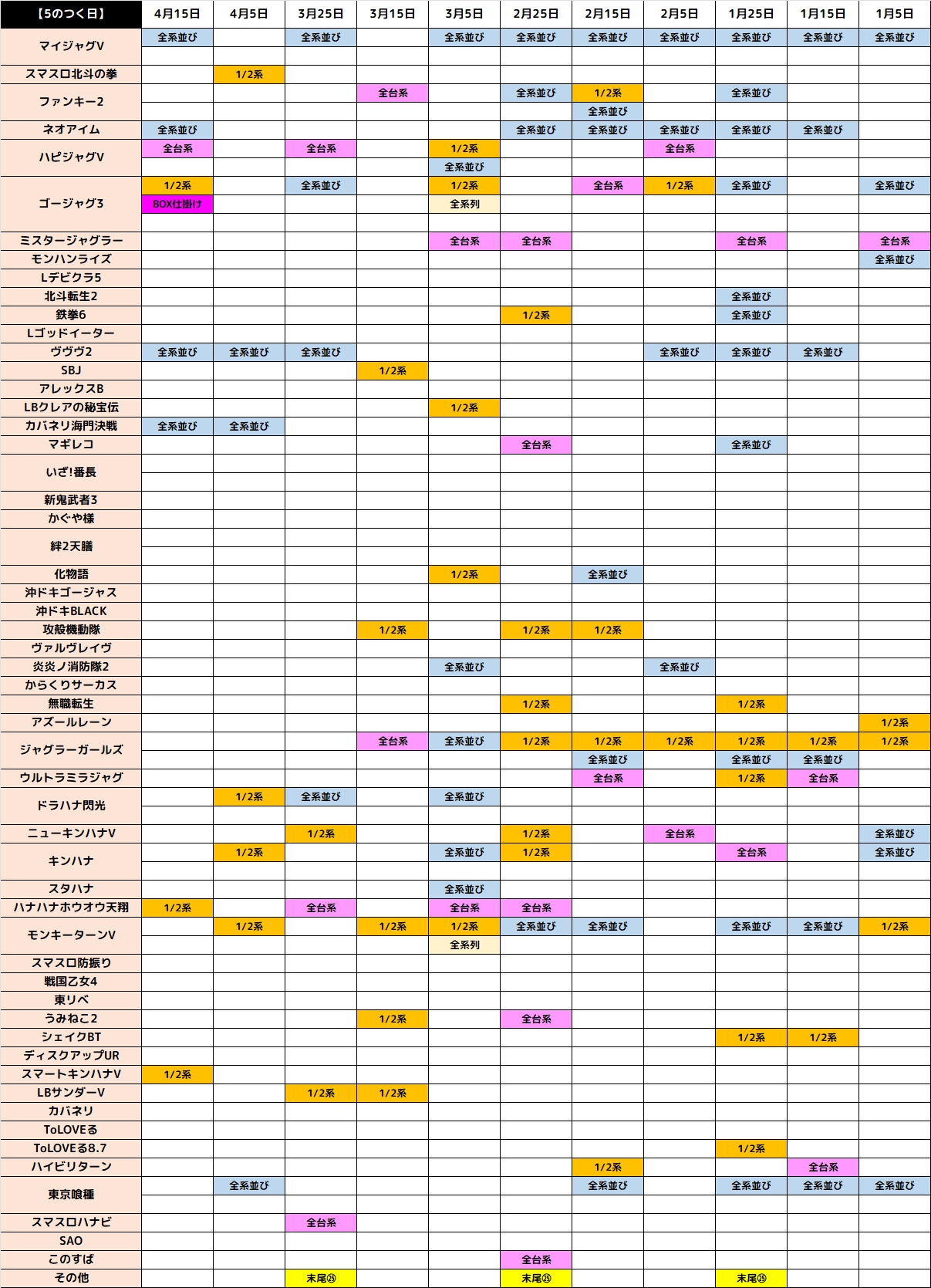 4月15日(水)|エスパス新宿歌舞伎町|⑤のつく日で⑤の日機種に複数の仕掛け!ジャグラーからはBOX仕掛けも登場!もちろん単品優秀台も盛りだくさん!