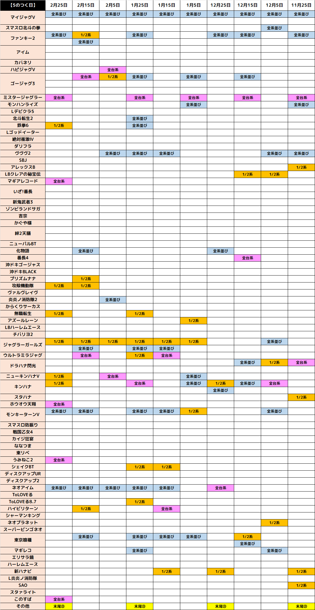 11月15日(土)|エスパス新宿歌舞伎町|5の日は5の日機種を中心に優秀仕掛けアリ!全台系はもちろん1/2系濃厚や並びの仕掛けが出現!