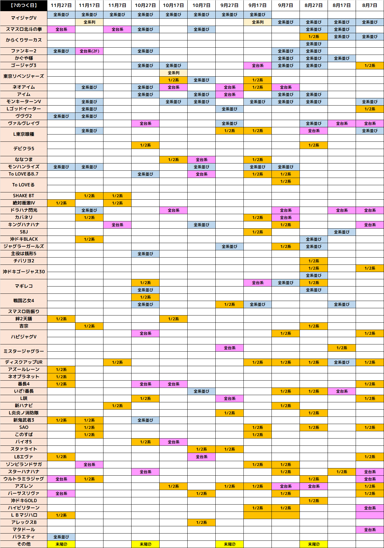11月27日(木)|エスパス新宿歌舞伎町|激熱7days最終日!対象フロアの4Fに優秀台は大量にアリ!もちろん全台系濃厚・高配分機種や並び仕掛けも多数確認でき、週間おすすめのスマスロ北斗は全台系濃厚!!