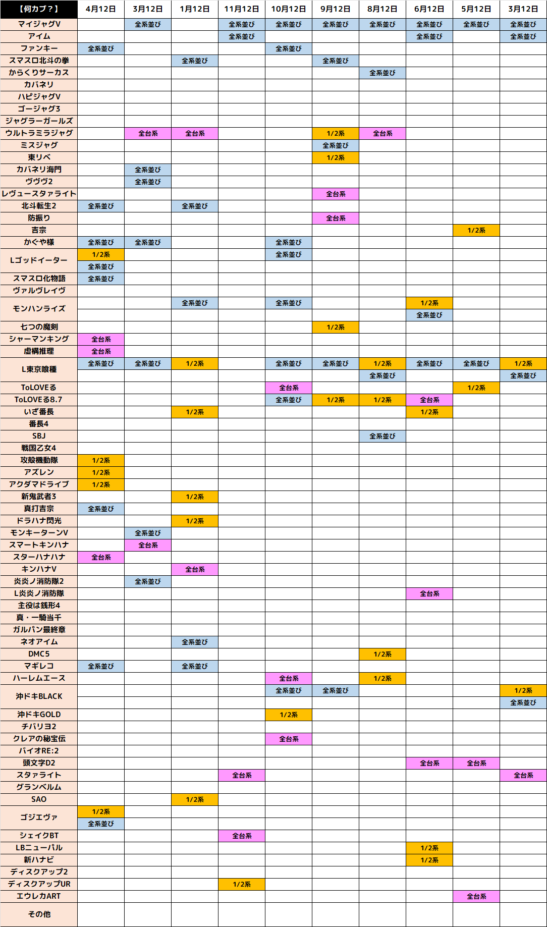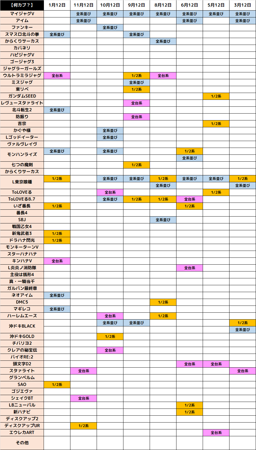 10月12日(日)|エスパス新宿歌舞伎町|毎月12日の「何カブ?」!何の日系の仕掛けが出現!今回もヒント機種から全台系濃厚の仕掛けを確認!その他にも並びを中心に様々な仕掛けアリ!