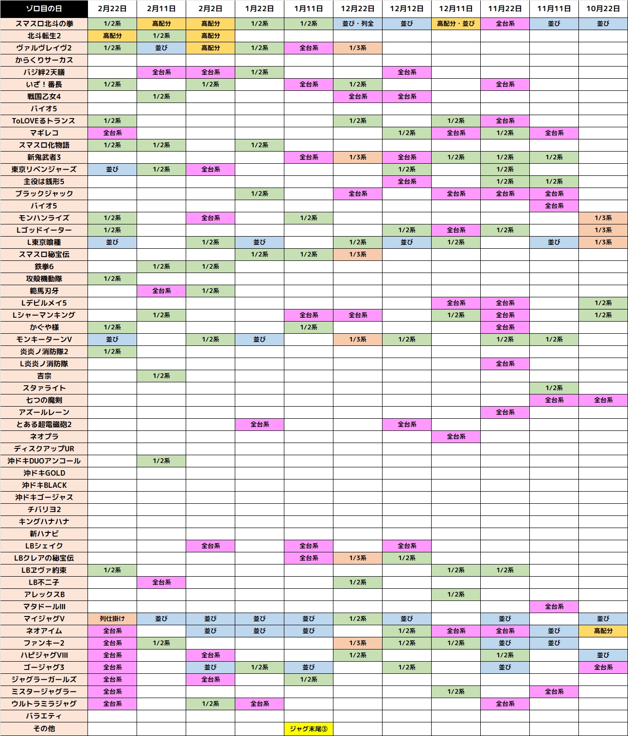 2月22日(日)|エスパス渋谷新館|ゾロ目の日と初取材のコンボ!ジャグラーの強力仕掛けを筆頭に全台系・1/2系・並びなど多彩な仕掛けが登場!ホール全体でも総差枚+19万枚超の爆出しに!