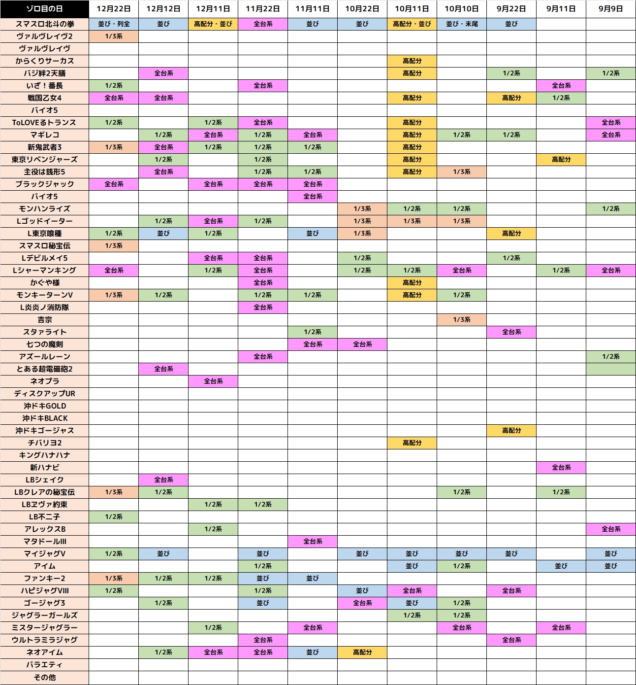 9月11日(木)|エスパス渋谷新館|ゾゾゾ告知×取材開催で多彩な仕掛けが登場!全台系・1/2系濃厚機種に加えて単品も多数出現!最新台からも優秀台が複数アリ!