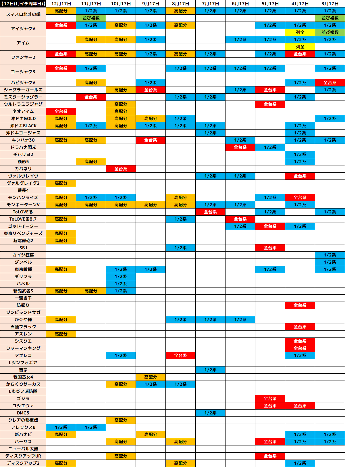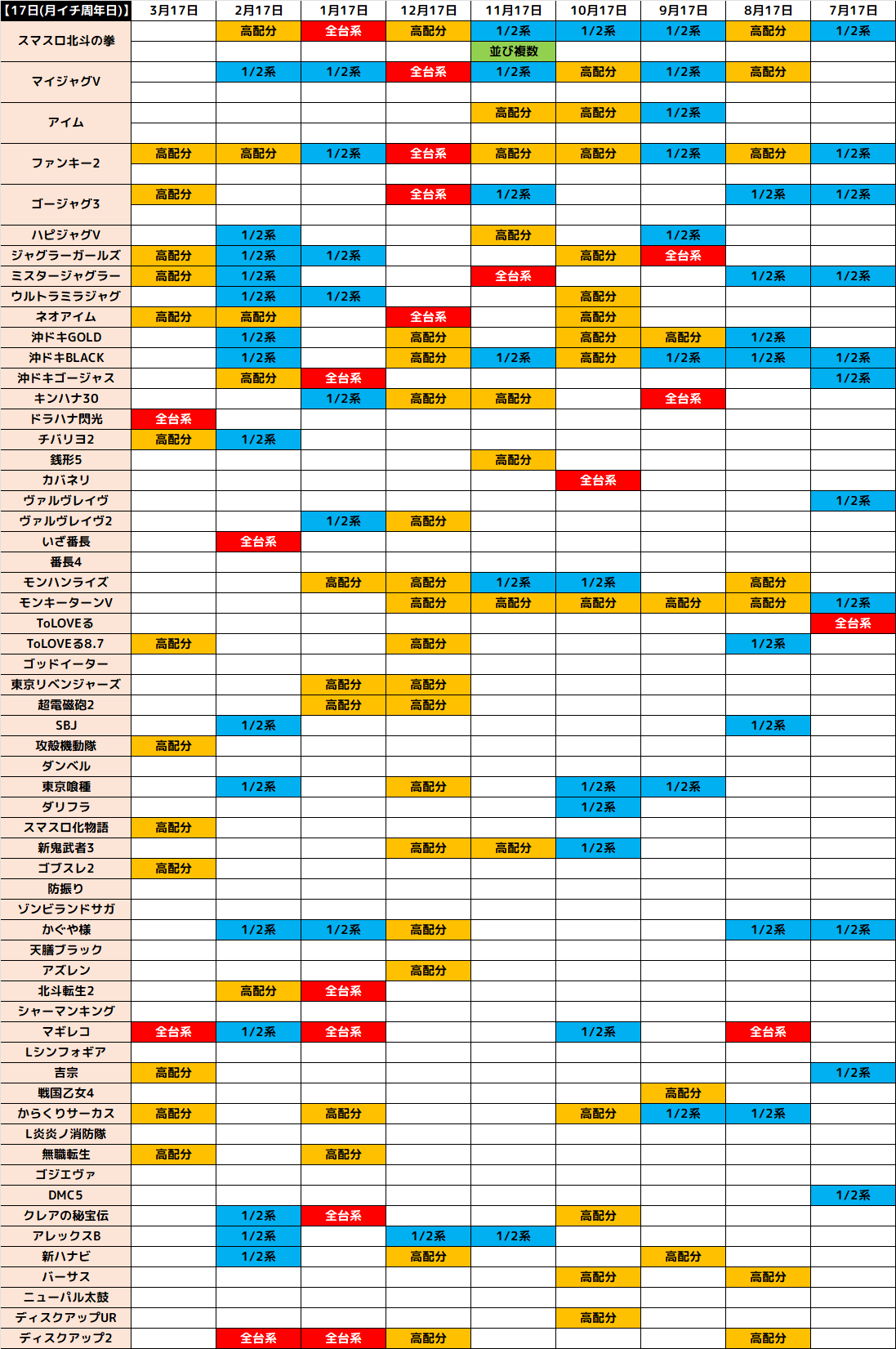 8月17日(日)│エスパス新小岩│総差枚+20万枚超の強烈仕掛け!17日おなじみのエリアから全系や高配分以上の機種多数!万枚超6台に3000枚超が60台以上!