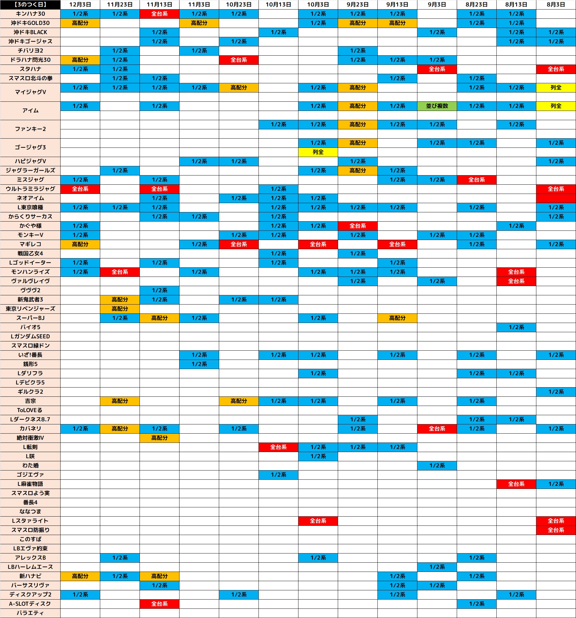 12月3日(水)│エスパス新小岩│3の日に強い沖スロはハナハナ系が全機種高配分仕様に!主力機&毎日オススメ機種も優秀仕掛けで爆裂台が続出!その他ノーマル・少台数機種・新台系も随所で優秀台が散見され、平均差枚+400枚オーバーの好成績をマーク!